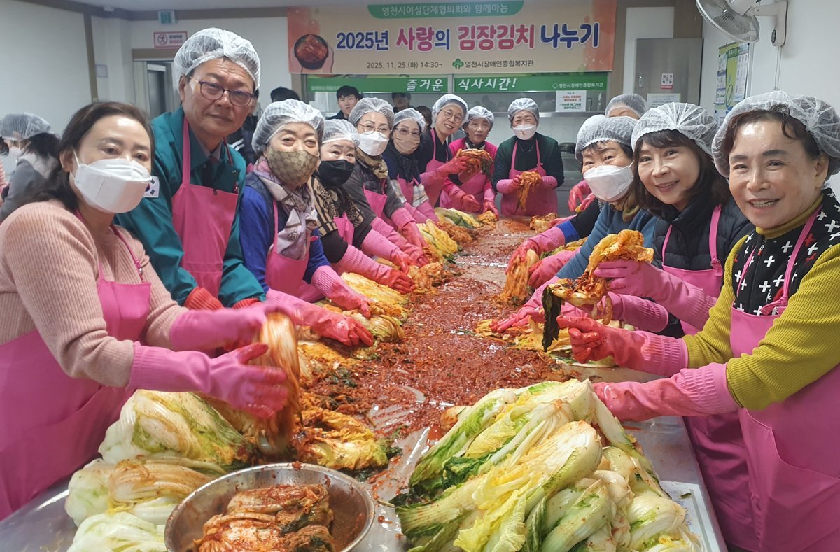 영천시 여성단체협의회, ‘사랑의 김장 봉사’실시 (영천시 제공) [PEDIEN] 영천시 여성단체협의회가 지난 25일 장애인종합복지관에서 '사랑의 김장 봉사'를 진행하며 지역사회에 따뜻한 온기를 불어넣었다.이번 봉사활동은 여성단체협의회 회원의 날을 기념하여 마련되었으며, 20여 명의 회원들이 참여하여 구슬땀을 흘렸다.회원들은 정성껏 담근 280여 포기의 김장 김치를 관내 장애인 120가구에 직접 전달하며 따뜻한 마음을 나눴다.이상숙 여성단체협의회장은 회원들과 함께 만든 김치가 어려운 이웃들에게 힘이 되기를 바란다는 소망을 전하며, 앞으로도 지역사회에 온정을 전하는 데 앞장서겠다고 밝혔다.최기문 영천시장은 이웃 사랑을 실천한 이상숙 회장과 회원들에게 감사를 표하며, 이번 나눔 행사가 추운 겨울에 희망의 메시지가 되기를 기대한다고 말했다.한편, 영천시 여성단체협의회는 14개 단체 1810여 명의 회원으로 구성되어 있다. 양성평등 기념행사, 사회복지시설 봉사, 지역 행사 참여, 장학금 기탁 등 다양한 사회공헌 활동을 통해 여성 권익 신장과 사회 참여 확대에 기여하고 있다.특히 이상숙 회장은 영천 지역 최초로 자원봉사 수지침 활동 1만 시간을 달성하고 경북도 자원봉사대회에서 대상을 수상하는 등 지역사회 공헌의 모범 사례로 인정받고 있다. -