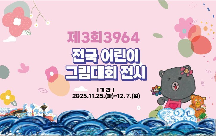군위문화관광재단,「제3회 3964 전국 어린이 그림대회」수상작 전시 (군위군 제공) [PEDIEN] 군위문화관광재단이 주최한 '제3회 3964 전국 어린이 그림대회' 수상작 전시회가 삼국유사배움터 화본마을에서 열린다.이번 전시는 11월 25일부터 12월 7일까지 화본마을 1층 작은 미술관에서 진행되며, 전국 어린이들의 다채로운 상상력이 담긴 작품들을 만나볼 수 있다.이번 그림대회는 '39세 엄마와 64세 할머니'라는 독특한 콘셉트로, 지난 10월 한 달간 전국에서 약 2100명의 어린이가 참여하며 뜨거운 관심을 받았다.심사를 거쳐 총 260점의 수상작이 선정되었고, 이 중 대상 수상작을 포함한 주요 작품 54점이 이번 전시회를 통해 공개된다.특히, 이번 전시회는 어린이들의 자유로운 시각으로 삼국유사의 역사적 가치와 지역 문화의 소중함을 되새겨보는 의미있는 자리다.재단 관계자는 늦가을, 아이들의 순수한 예술 세계를 경험하고 싶은 많은 사람들의 방문을 기대한다고 밝혔다. -