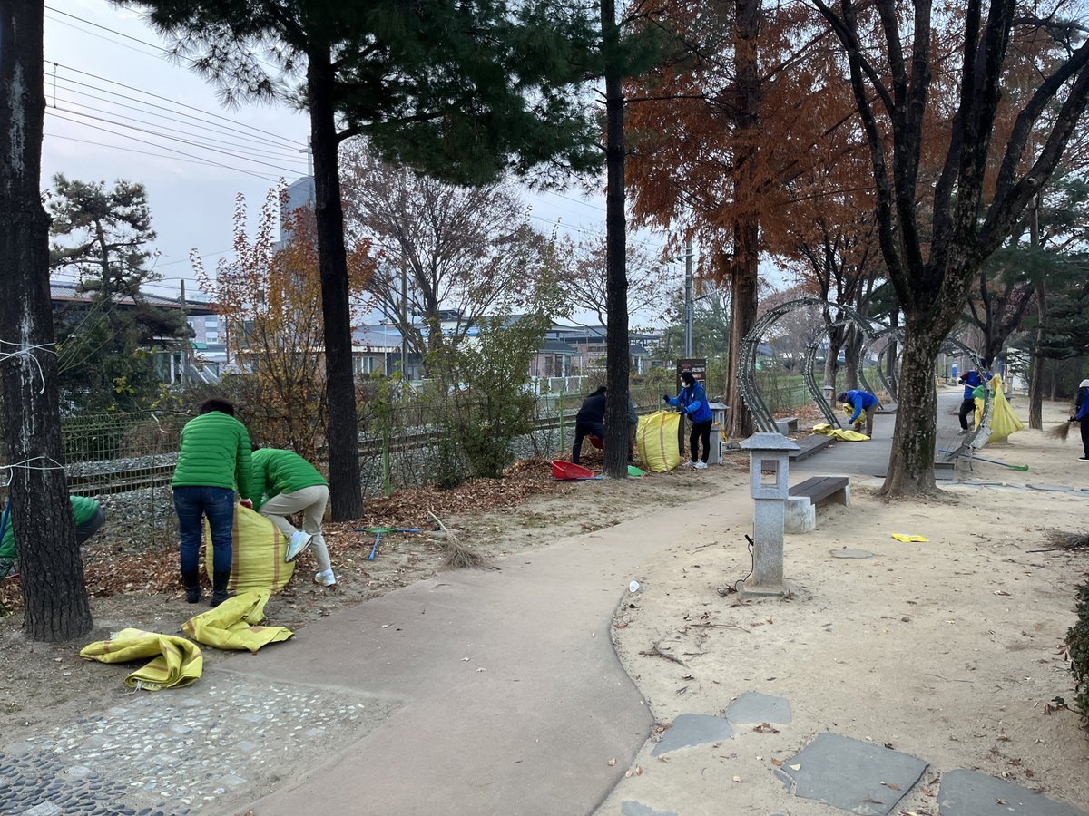 하망동, 주민과 함께 원당수목원 낙엽 정비…산불 예방 효과