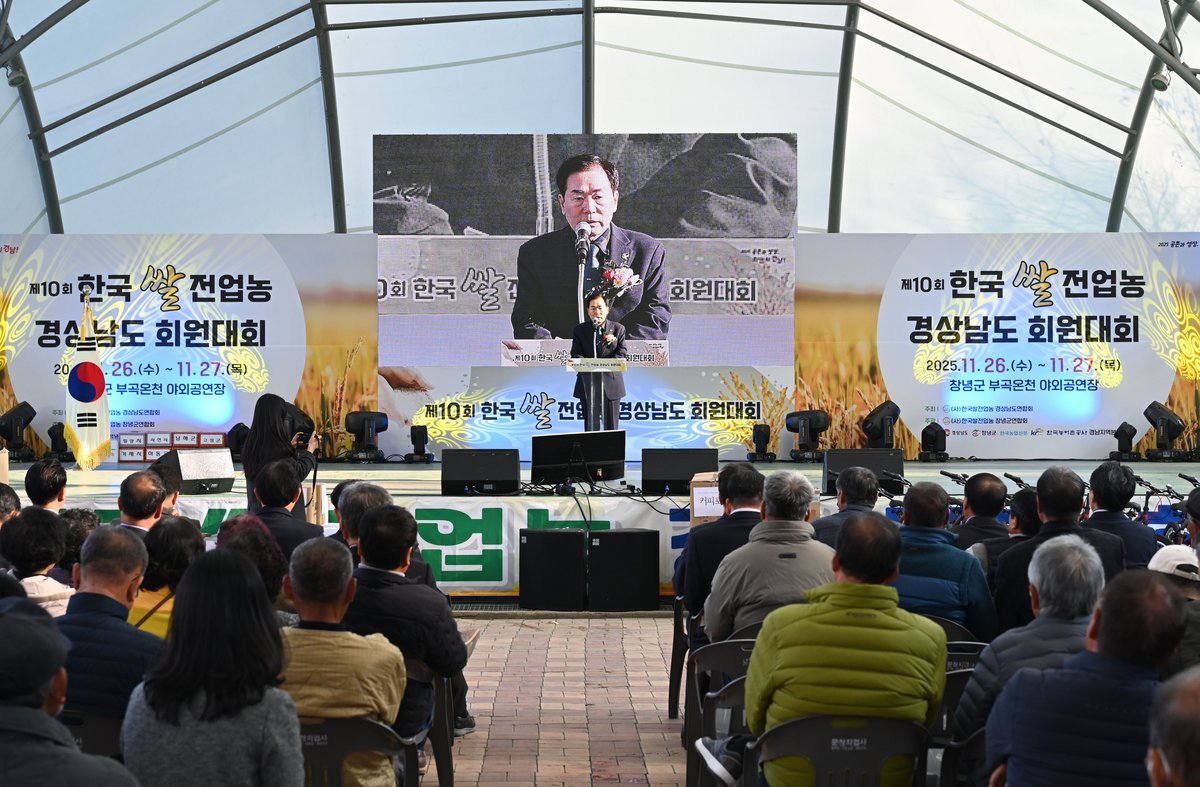 창녕군, 제10회 한국쌀전업농 경상남도 회원대회 개최 (창녕군 제공) [PEDIEN] 창녕군이 지난 26일부터 27일까지 부곡온천 야외공연장에서 제10회 한국쌀전업농 경상남도 회원대회를 성공적으로 개최했다.이번 행사는 한국쌀전업농 경상남도연합회가 주최하고 한국쌀전업농 창녕군연합회가 주관하여 경남 지역 쌀 농가들이 한자리에 모여 쌀 산업의 발전 방향을 모색하는 자리로 마련됐다.대회에서는 고품질 쌀 전시회와 농기계·농자재 전시 등 다양한 프로그램이 진행되어 쌀전업농들이 최신 기술과 정보를 교류하는 기회를 가졌다. 특히 쌀 산업 발전에 기여한 유공자 표창과 사랑의 쌀 나눔 행사가 진행되어 쌀전업농의 자긍심을 고취하고 이웃 사랑을 실천하는 의미 있는 시간을 보냈다.성낙인 창녕군수는 축사를 통해 국가 식량안보를 책임지는 쌀전업농 연합회에 감사를 표하고, 쌀전업농의 지속적인 성장을 위한 행정적 지원을 약속했다.이번 대회는 경남 쌀 농가들이 서로 협력하고 발전하는 계기가 될 것으로 전망된다. -