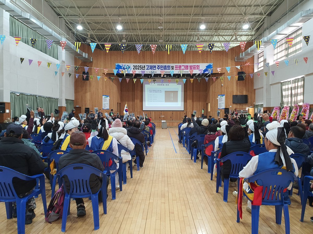 거창군 고제면 주민자치회, 2025년 주민총회 개최 (거창군 제공) [PEDIEN] 거창군 고제면에서 지난 18일, 2025년 주민총회가 개최되어 주민들의 적극적인 참여 속에 풀뿌리 민주주의를 실현하는 뜻깊은 시간을 가졌다.고제문화체육회관에서 열린 이번 총회에는 고제면장을 비롯하여 각 기관 단체장 및 주민 150여 명이 참석하여 자리를 빛냈다. 총회는 고제초등학교 학생들의 아름다운 가야금 연주로 시작을 알렸다.총회에서는 2025년 자치사업 추진 현황과 2026년 자치계획안 보고가 진행되었으며, 주민자치회 활동 평가 및 향후 활동 계획에 대한 설명이 이어졌다. 특히, 2025년 주요 성과로 거창저수지 벚꽃길 태양광 경관조명 설치 사업과 김해시 장유3동과의 자매결연 협약 체결이 보고되어 주목을 받았다.2026년 주민참여예산사업으로는 꽃사과거리 가로수 정비 사업과 사과 농가 밀집 지역 농약병 수거 공간 조성 사업이 선정되었음을 발표했다. 또한, 안전 신고를 위한 야광형 건물번호판 보급 사업과 마을 입구 경관 개선을 위한 고제면 LED 마을 표지석 설치 등 2건의 안건이 상정되어 현장 투표를 통해 주민들이 직접 사업을 선정하는 시간을 가졌다.총회의 마지막 순서로는 고제면 주민자치 프로그램 수강생들의 공연이 펼쳐졌다. 풍물, 스포츠댄스, 건강체조, 통기타 수강생들이 그동안 갈고 닦은 실력을 뽐냈으며, 실버오케스트라와 아코디언 축하 공연은 행사 분위기를 더욱 고조시켰다.강기성 고제면 주민자치회장은 “이번 주민총회는 주민들이 직접 마을 의제를 논의하고 결정하는 뜻깊은 자리였다”며, “선정된 사업이 2027년 예산에 반영될 수 있도록 지속적으로 노력하겠다”고 밝혔다. -