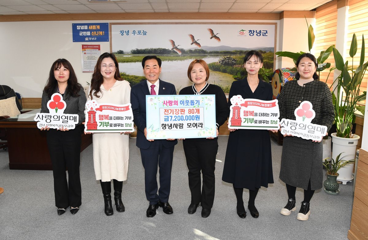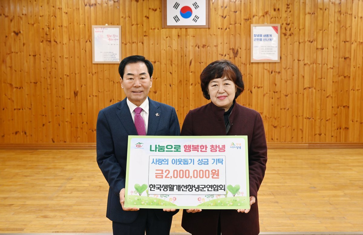 한국생활개선창녕군연합회, 따뜻한 나눔으로 지역사회 온기 전해 = 연말연시 맞아 관내 취약계층 지원에 동참 = (창녕군 제공) [PEDIEN] 한국생활개선창녕군연합회가 연말연시를 맞이해 관내 어려운 이웃을 위한 성금 200만 원을 경남사회복지공동모금회에 기탁했다.이번 기탁식은 지난 17일 창녕군 농업기술센터에서 진행됐으며, 기탁된 성금은 지역 내 취약계층에게 전달될 예정이다.성금은 지난 10월에 개최된 비사벌문화제 기간 동안 회원들이‘우포따오기 한마음 장터’에 직접 참여해 조성한 수익금으로 마련됐다.차정화 회장은 “회원들의 정성과 마음이 담긴 성금이 어려운 이웃들에게 작은 희망이 되길 바란다”며 “모두가 함께 웃을 수 있는 따뜻한 연말연시를 맞이하길 기대한다”고 말했다.현장에 참석한 성낙인 창녕군수는 “지역사회를 위해 꾸준히 나눔을 실천해 온 한국생활개선창녕군연합회에 깊이 감사드린다”며 “기탁해 주신 소중한 성금은 동절기 어려움을 겪는 이웃들에게 잘 전달하겠다”고 밝혔다.한편, 한국생활개선창녕군연합회는 매년 반찬 나눔 봉사 등 이웃과 함께하는 나눔 활동을 지속적으로 펼치는 동시에 온열질환 예방을 위한 농업인 안전리더 활동을 활발히 전개하여 농업인 안전 강화를 통해 안전하고 활력있는 농촌 환경 조성에도 앞장서고 있다. -