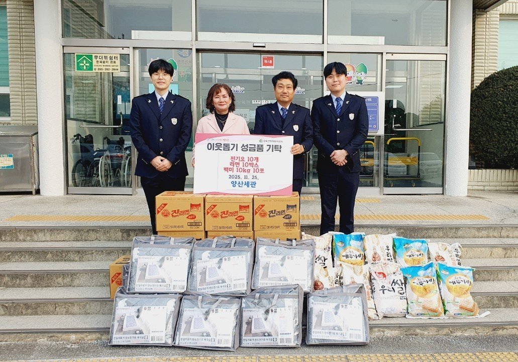 양산세관, 따뜻한 겨울준비 위한 후원물품 기탁 (양산시 제공) [PEDIEN] 양산세관이 지난 25일, 지역 사회의 어려운 이웃들을 위해 따뜻한 겨울나기 지원에 나섰다.상북면 행정복지센터에 전기요 10매, 라면 10박스, 백미 10포를 전달하며 훈훈한 온정을 더했다.양산세관은 매년 꾸준히 사회공헌 활동을 이어오고 있으며, 이번 후원 역시 나눔의 일환으로 기획됐다. 특히 지역 내 취약계층이 따뜻한 겨울을 보낼 수 있도록 이웃사랑을 실천하는 데 의미를 뒀다.양산세관 관계자는 “단순히 물품을 전달하는 것을 넘어, 이웃들과 지속적으로 소통하고 공감하며 지역사회 발전에 기여하고자 한다”고 밝혔다.박순옥 상북면장은 “양산세관의 후원이 동절기를 맞아 어려움을 겪는 주민들에게 큰 힘이 될 것이다”며 감사의 뜻을 전했다. 또한 “전달받은 후원 물품은 지역사회의 취약계층을 돕는 데 소중하게 사용하겠다”고 덧붙였다. -