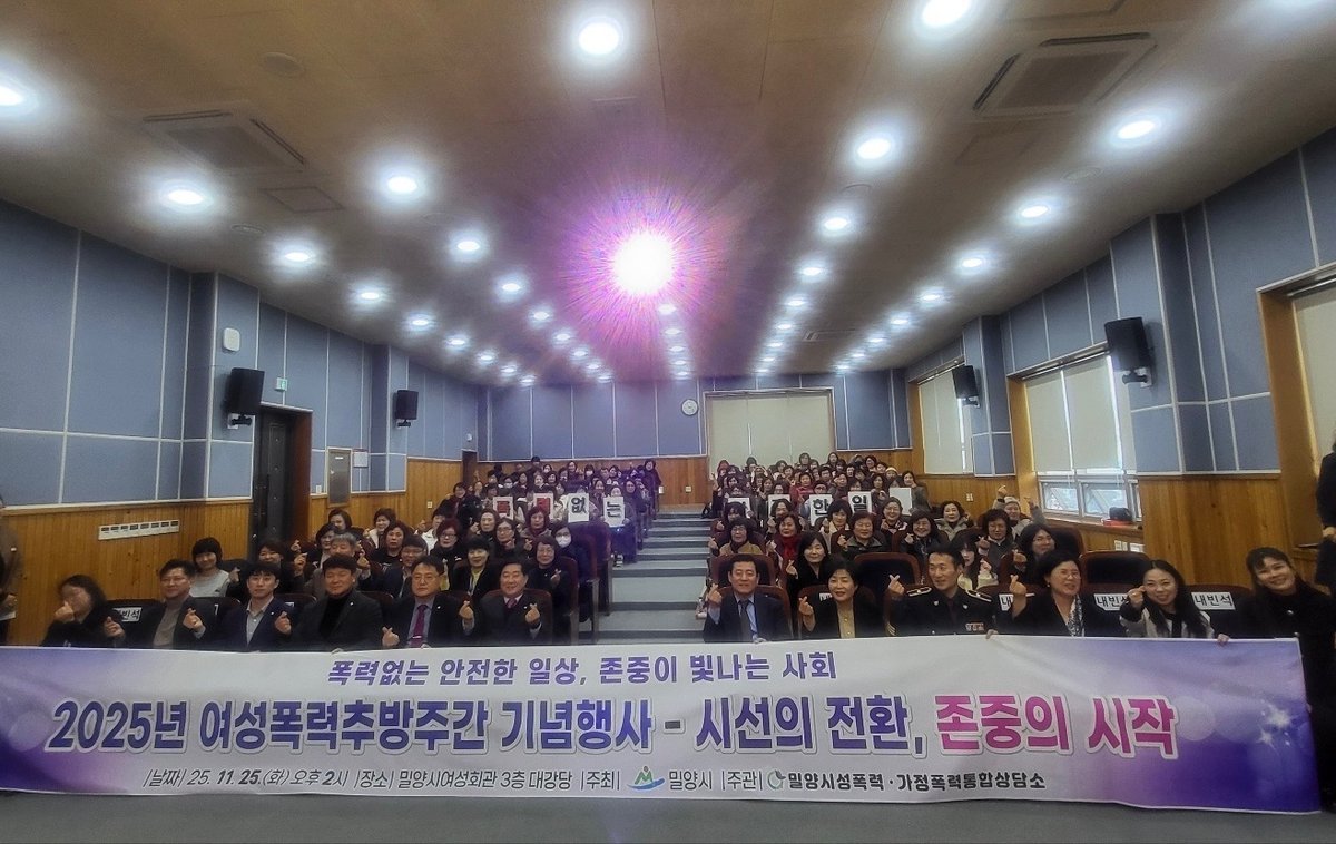 밀양시성폭력·가정폭력통합상담소, ‘시선의 전환, 존중의 시작’행사 개최 (밀양시 제공) [PEDIEN] 밀양시가 여성폭력추방주간을 맞아 시민들과 함께 폭력 없는 안전한 사회를 만들기 위한 '시선의 전환, 존중의 시작' 행사를 개최했다.이번 행사는 밀양시성폭력·가정폭력통합상담소 주관으로 밀양시여성회관에서 열렸으며, 시민 100여 명이 참여하여 성인지 감수성을 높이고 서로 존중하는 문화를 확산하는 시간을 가졌다.행사에서는 시민들이 직접 참여한 폭력 예방 챌린지 영상 상영을 시작으로, 네잎클로버 키링 만들기 체험, 이충열 작가의 특별 강연 등 다채로운 프로그램이 진행됐다.허해선 상담소장은 "시민들이 함께 공감하며 폭력 없는 안전한 일상을 만들어가는 뜻깊은 자리였다"라며, "앞으로도 지역사회와 협력하여 폭력 예방 문화를 확산하는 데 더욱 힘쓰겠다"라고 밝혔다.곽근석 부시장은 "시민들의 관심과 참여가 폭력 없는 안전한 밀양을 만드는 가장 큰 힘"이라며, "시에서도 관련 기관과 긴밀히 협력하여 여성 폭력 예방과 피해자 보호를 위한 정책을 적극적으로 추진할 것"이라고 강조했다.한편, 밀양시 성폭력·가정폭력통합상담소는 여성 폭력 피해 예방과 지원을 위해 상담 및 연계 지원을 제공하고 있으며, 긴급 피난처 또한 운영하고 있다. -