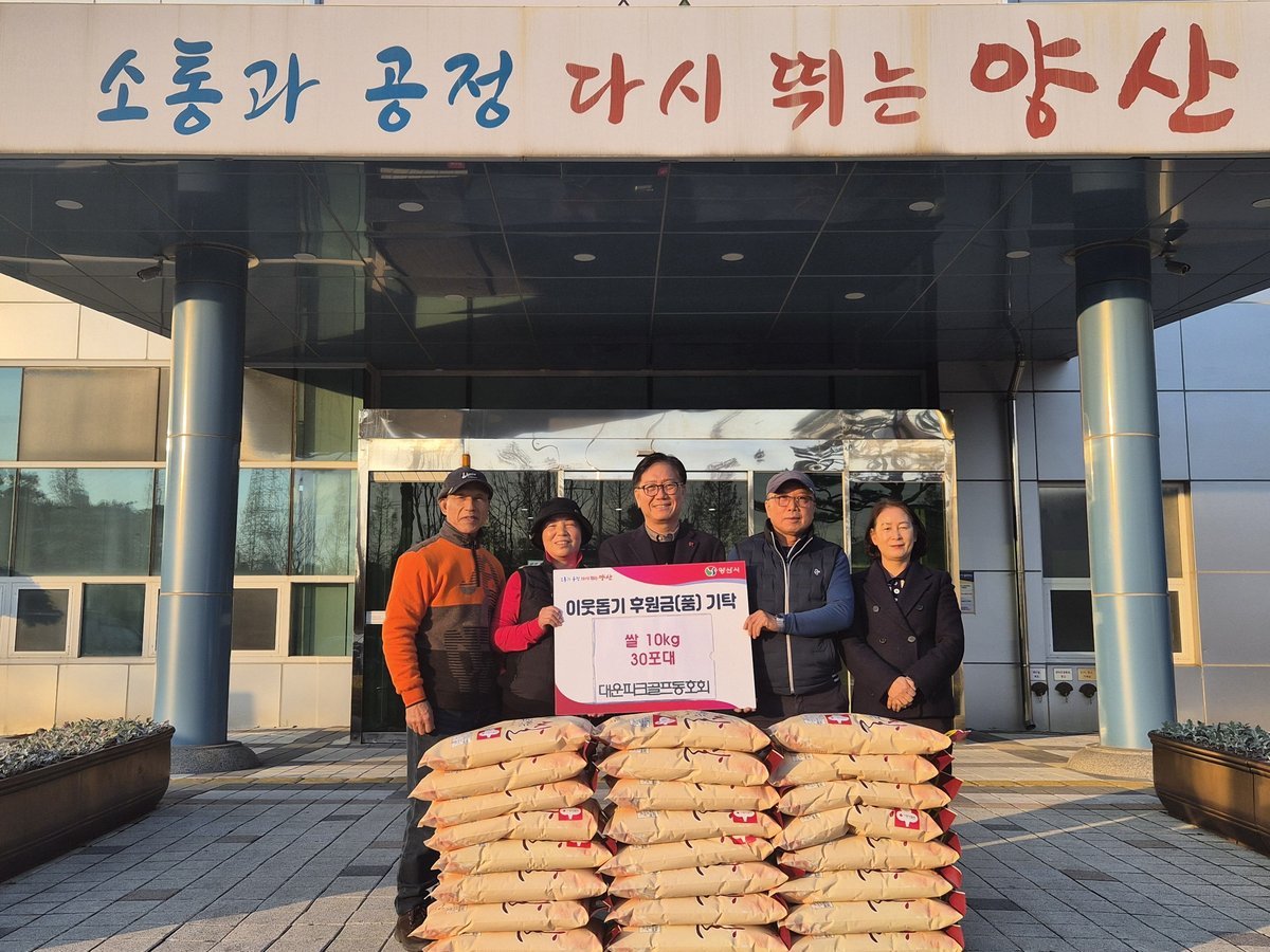 대운파크골프동호회, 웅상출장소에 쌀 기부 (양산시 제공) [PEDIEN] 대운파크골프동호회가 11일 웅상출장소를 찾아 지역 내 어려운 이웃을 위한 따뜻한 나눔을 실천했다.동호회는 회원들의 마음을 모아 마련한 10kg 쌀 30포대를 기부하며 훈훈함을 더했다.이번 기부는 대운파크골프동호회 회원들이 십시일반 성금을 모아 이루어졌으며, 회원들은 지역사회에 대한 책임감을 느끼고 나눔을 통해 공동체의 중요성을 되새겼다.강찬용 회장은 이웃을 돕는 일에 동참하게 되어 기쁘다는 소감을 밝히며, 앞으로도 지속적인 나눔 활동을 통해 지역사회에 기여하겠다는 의지를 전했다.오상호 웅상출장소장은 대운파크골프동호회의 따뜻한 마음에 감사를 표하며, 기부받은 쌀은 도움이 필요한 곳에 소중히 전달될 예정이라고 밝혔다.이번 기부를 통해 대운파크골프동호회는 지역사회 나눔 문화 확산에 기여하고, 따뜻한 공동체 조성에 앞장서는 모범적인 모습을 보여주었다. -