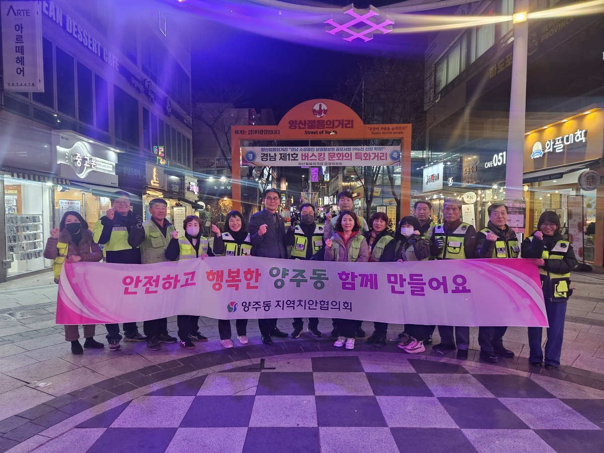양주동 지역치안협의회, 합동 순찰 활동 실시 (양산시 제공) [PEDIEN] 양산시 양주동 지역치안협의회가 지난 11일 저녁, 중부동 젊음의 거리 일대에서 합동 순찰 활동을 펼쳤다.이번 순찰은 연말을 맞아 시민들의 외부 활동이 증가할 것으로 예상됨에 따라, 양주동 지역의 청소년을 보호하고 치안을 강화하기 위해 마련됐다. 양주파출소, 자율방범대, 생활안전협의회 등 민관 협력으로 구성된 양주동 지역치안협의회는 스타광장과 샵광장 등 청소년들이 많이 모이는 지역을 중심으로 도보 순찰을 진행했다.협의회는 순찰을 통해 청소년 유해환경 업소를 점검하고, 주민들에게 안전한 사회를 만드는 데 협조해 줄 것을 당부했다. 김재연 양주동장은 추운 날씨에도 순찰 활동에 참여한 회원들에게 감사를 표하며, 앞으로도 양주동 주민들이 안전하게 거리를 다닐 수 있도록 최선을 다하겠다고 밝혔다.이번 합동 순찰은 민관이 협력하여 지역 사회의 안전을 지키는 모범 사례로 평가받고 있으며, 양주동 주민들의 안전한 연말을 위한 노력이 계속될 것으로 전망된다. -