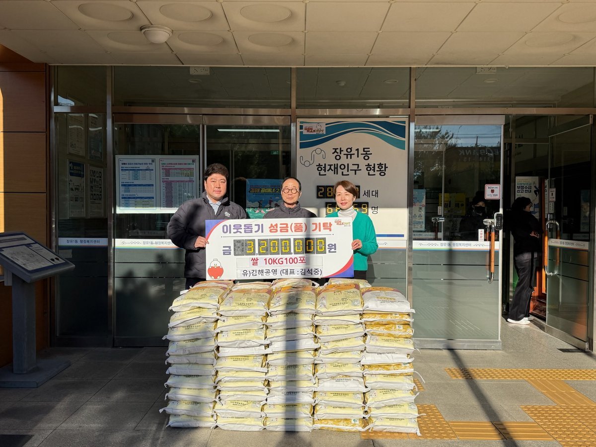 유)김해공영, 김해시 장유1동에 쌀 320만원 상당 기탁 (김해시 제공) [PEDIEN] 김해시 장유1동에 따뜻한 나눔의 손길이 이어졌다. 폐기물 수집 및 처리 전문업체 유)김해공영이 연말을 맞아 어려운 이웃을 위해 320만원 상당의 쌀을 기탁하며 훈훈함을 더했다.김해공영은 지역사회 공헌 활동에 꾸준히 참여하며 사회적 책임을 다하고 있다. 매년 수익금의 일부를 관내 저소득층을 위해 기부하는 등 나눔을 실천하고 있다.올해는 장유지역에 백미 100포를 기부하며 이웃사랑을 몸소 실천했다. 김석중 대표는 “추운 겨울, 어려운 이웃들에게 조금이나마 힘을 보태고 싶었다”며 “후원한 쌀이 잘 전달되어 따뜻한 겨울을 보내는 데 도움이 되기를 바란다”고 전했다.이삼주 장유1동장은 “장유 지역 주민들을 위한 김해공영의 따뜻한 기부에 깊이 감사드린다”며 “기탁받은 쌀은 어려운 이웃들에게 소중히 전달하겠다”고 밝혔다. 김해공영의 지속적인 나눔 활동은 지역사회에 따뜻한 온기를 불어넣고 있다. -