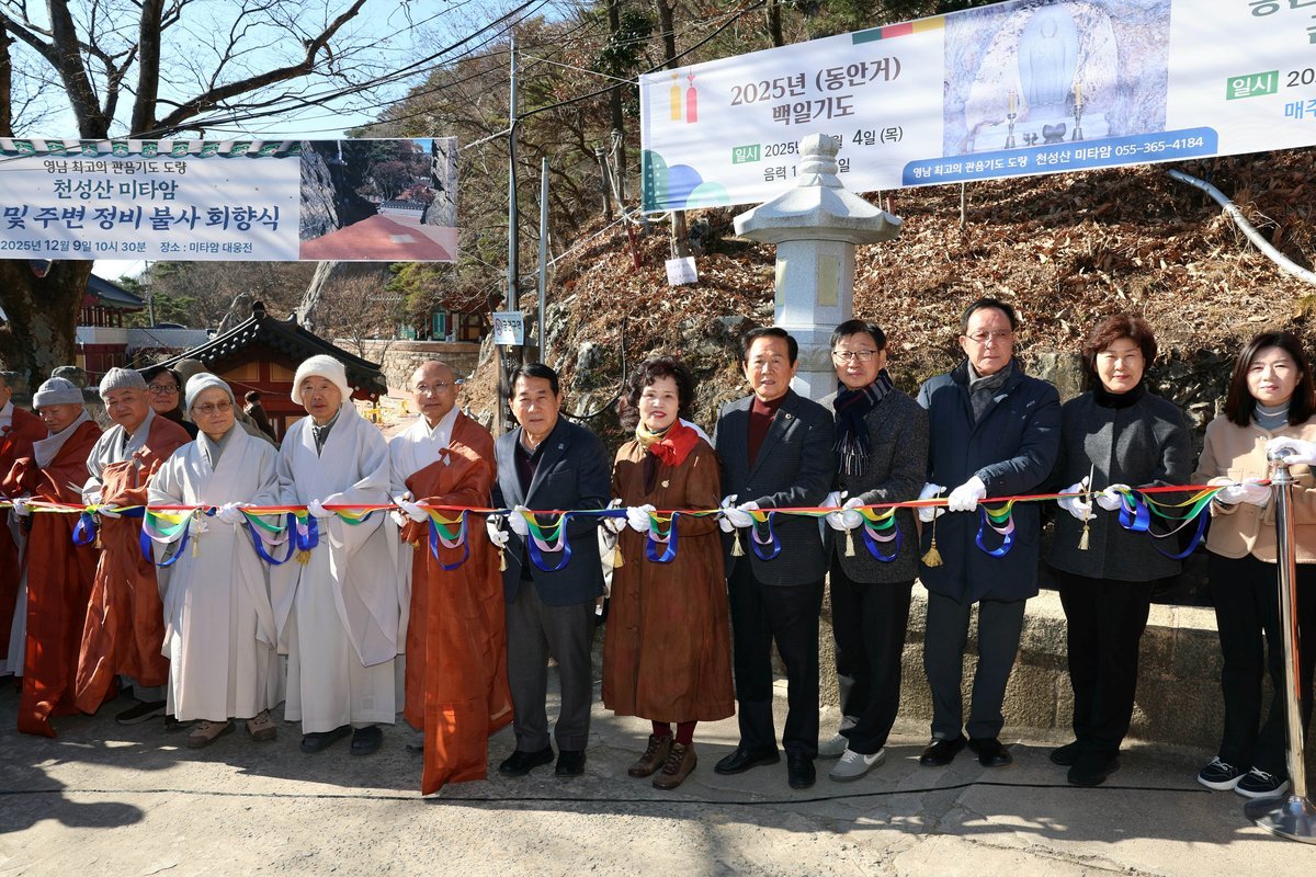 양산 천성산 미타암, 공양간 건립공사 준공 (양산시 제공) [PEDIEN] 양산 천성산에 위치한 미타암이 노후된 공양간을 새롭게 단장하고 방문객 맞이에 나섰다.미타암은 그간 낡은 공양간과 혼잡한 동선으로 인해 방문객들의 불편이 꾸준히 제기되어 왔다. 이에 양산시와 미타암은 총 20억 원의 사업비를 투입, 공양간 신축 사업을 추진했다.지난해 7월 착공하여 올해 12월 준공된 새 공양간은 주변 경관을 정비하고 참배객과 관람객의 동선을 분리하여 더욱 안전하고 쾌적한 환경을 제공한다.미타암은 공양간 준공을 기념하여 양산시인재육성장학재단에 장학금 1000만 원을 기탁하고, 웅상출장소에는 라면 1000박스를 전달하며 지역사회에 따뜻한 마음을 전했다.양산시는 새롭게 단장한 공양간을 통해 미타암 방문객들이 더욱 편안하게 참배하고 휴식을 취할 수 있기를 기대하고 있다. 또한 2026년 양산 방문의 해를 맞아 천성산의 아름다운 자연과 미타암의 고즈넉한 분위기를 더 많은 사람들이 안전하게 즐길 수 있도록 노력할 계획이다. -