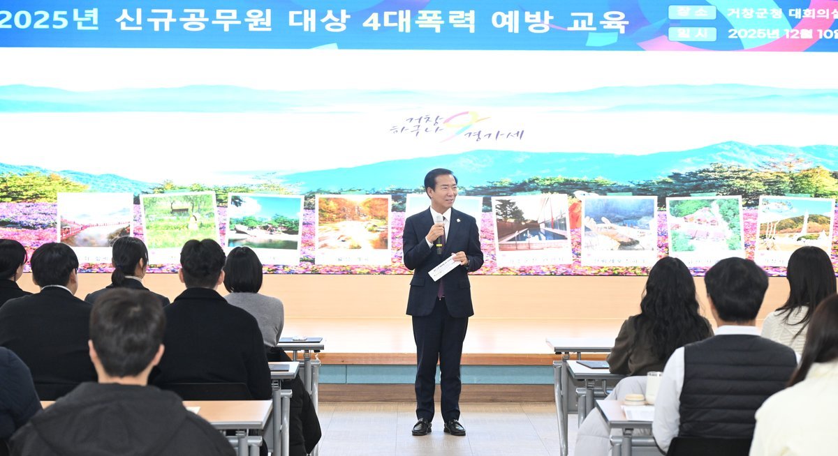 거창군, 신규 직원 대상 성평등 조직문화 교육 실시 (거창군 제공) [PEDIEN] 거창군은 지난 10일, 군청 대회의실에서 신규 직원과 일반 직원 50여 명을 대상으로 4대 폭력 예방교육을 실시하고, 신규 직원에게 성평등 조직문화 조성의 일환으로 특별한 결재판을 배부하는 이벤트도 가졌다.이번 교육은 지난 10월에 임용된 신규 직원의 성희롱·성폭력·성매매·가정폭력 등 ‘4대 폭력’에 대한 이해를 높이고 예방 역량을 강화하기 위해 마련됐다.전문 강사가 참여해 실질적 사례 중심으로 진행했으며, 직원들은 조직 내 발생할 수 있는 위험 상황 대응법, 예방 중심의 조직문화 형성 방법 등에 대해 집중적으로 배웠다.이날 배부된 ‘성평등 지킴이 결재판’은 거창군이 2023년부터 추진해 온 성평등 조직문화 확산 사업의 하나로, 결재판 안쪽에 ‘우리가 바로 성평등 지킴이’라는 문구가 새겨져 있다.이는 공직자가 일상에서 성인지 관점을 실천하고 성평등 가치를 적극적으로 확산하자는 의미를 담고 있다.구인모 거창군수는 “성평등은 선택이 아닌 공직사회의 기본 가치”라며 “오늘 함께한 신규 직원뿐만 아니라, 모든 직원이 조직문화의 변화를 체감하고 실천할 수 있도록 지속적인 교육과 홍보를 이어 가겠다”고 밝혔다.한편, 거창군은 여성친화도시 지정 추진, 성평등 조직문화 조성 사업, 폭력예방교육 강화 등 안전하고 존중받는 직장 내 성평등한 조직문화 조성을 위해 다양한 정책을 추진하고 있다. -