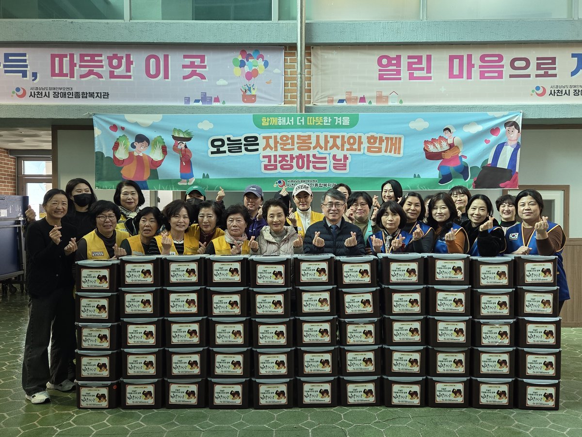 사천시 장애인종합복지관, 함께해서 더 따뜻한 겨울- 2025년 김장지원사업 진행 - (사천시 제공) [PEDIEN] 사천시 장애인종합복지관이 지역사회 봉사자들과 함께 김장 나눔 행사를 진행, 따뜻한 겨울을 선물했다.지난 11월 24일부터 26일까지 진행된 '2025년 김장지원사업'을 통해 지역 내 장애인 60가정에 정성껏 담근 김장김치를 전달했다.이번 김장 나눔은 겨울철 식생활에 어려움을 겪는 취약계층을 돕기 위해 마련됐다. 사천시여성단체협의회 오영순 명예회장을 비롯해 사천읍·용현면 적십자, 사천여성회, 사천 로타리클럽 부인회, 사천소방서, 삼천포성당, 용현면농가주부모임, 홈플러스 삼천포점 나눔봉사단 등 50여 명의 자원봉사자들이 참여하여 힘을 보탰다.봉사자들은 김장김치를 직접 전달하며 장애인 가정의 안부를 묻고 건강 상태를 확인하는 등 뜻깊은 시간을 가졌다.복지관 관계자는 이번 나눔이 지역사회의 협력으로 이루어진 결실임을 강조하며, 앞으로도 이웃과 함께하는 따뜻한 공동체 문화를 지속적으로 확대해 나갈 계획이라고 밝혔다. -