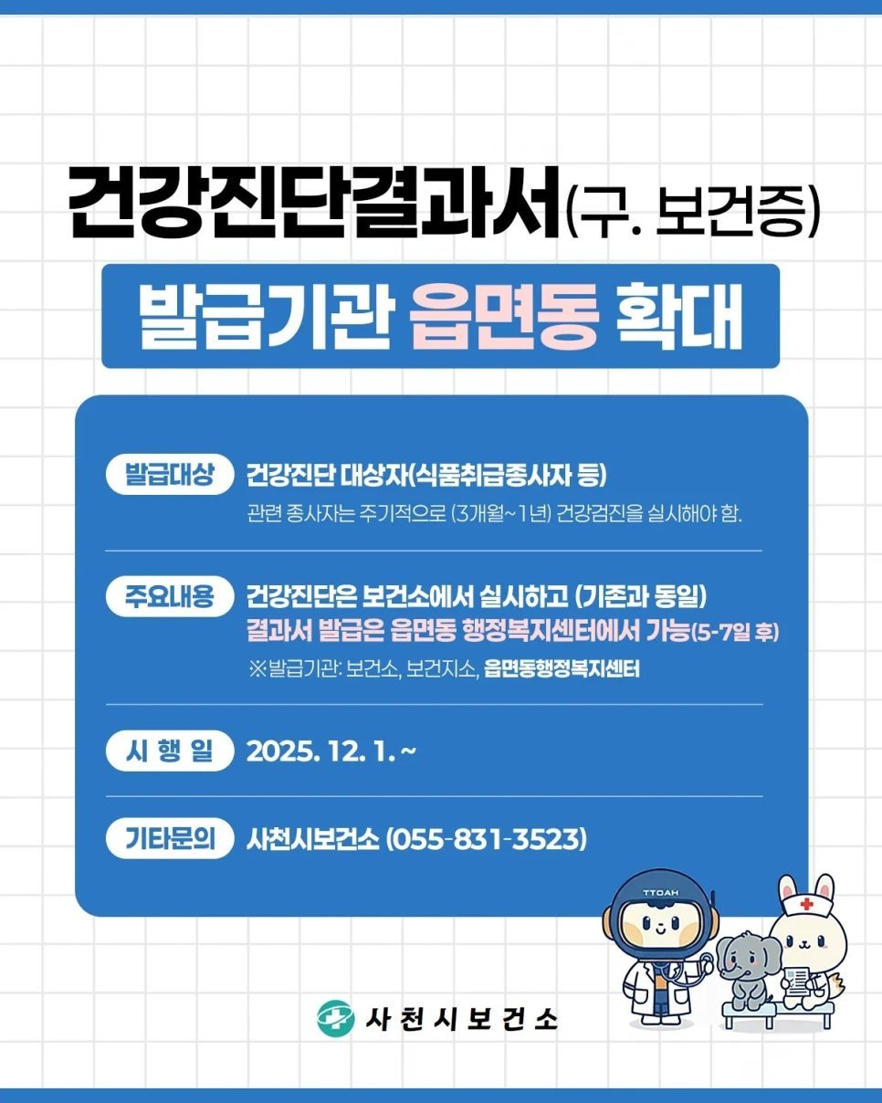 사천시, 건강진단결과서 발급기관 읍면동 확대…시민 편의 증진