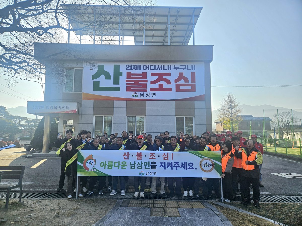 거창군 남상면, 주민과 함께하는 산불 Zero 도전! (거창군 제공) [PEDIEN] 거창군 남상면이 주민들과 함께 산불 없는 청정 마을 만들기에 나섰다.지난 26일, 남상면은 이장자율협의회, 의용소방대 등 유관단체와 주민 70여 명이 참여한 가운데 '2025년 추기 산불예방 결의대회'를 개최하고 산불 예방을 위한 결의를 다졌다.참석자들은 결의문 낭독과 구호 제창을 통해 산불 근절 의지를 다졌으며, 면 소재지 일대에서 산불 예방 캠페인을 펼쳐 주민들에게 산불의 위험성을 알리고 예방의 중요성을 강조했다.남상면은 11월부터 산불상황실을 운영하며 2025년 추기 및 2026년 춘기 산불방지 종합대책을 추진하고 있다. 산불 감시 인력 14명을 배치하여 순찰, 계도, 홍보 활동을 강화하고, 거창읍과 남상면 경계 지점 및 행정복지센터에 대형 현수막을 설치하여 산불 예방에 대한 주민들의 경각심을 높이고 있다.곽칠식 남상면장은 “최근 잇따른 산불 발생으로 선제적 대응이 중요한 시기”라며, “산불 없는 남상면을 위해 면민 모두의 관심과 적극적인 참여를 부탁드린다”고 당부했다.한편, 산림보호법에 따라 산림 또는 인접 지역에서 논·밭두렁 태우기나 쓰레기 소각 등으로 불을 피우거나 불을 가지고 들어갈 경우 100만 원 이하의 과태료가 부과될 수 있다. 실수로 산불을 낸 경우에도 3년 이하의 징역 또는 3000만 원 이하의 벌금이 부과될 수 있어 각별한 주의가 요구된다. -