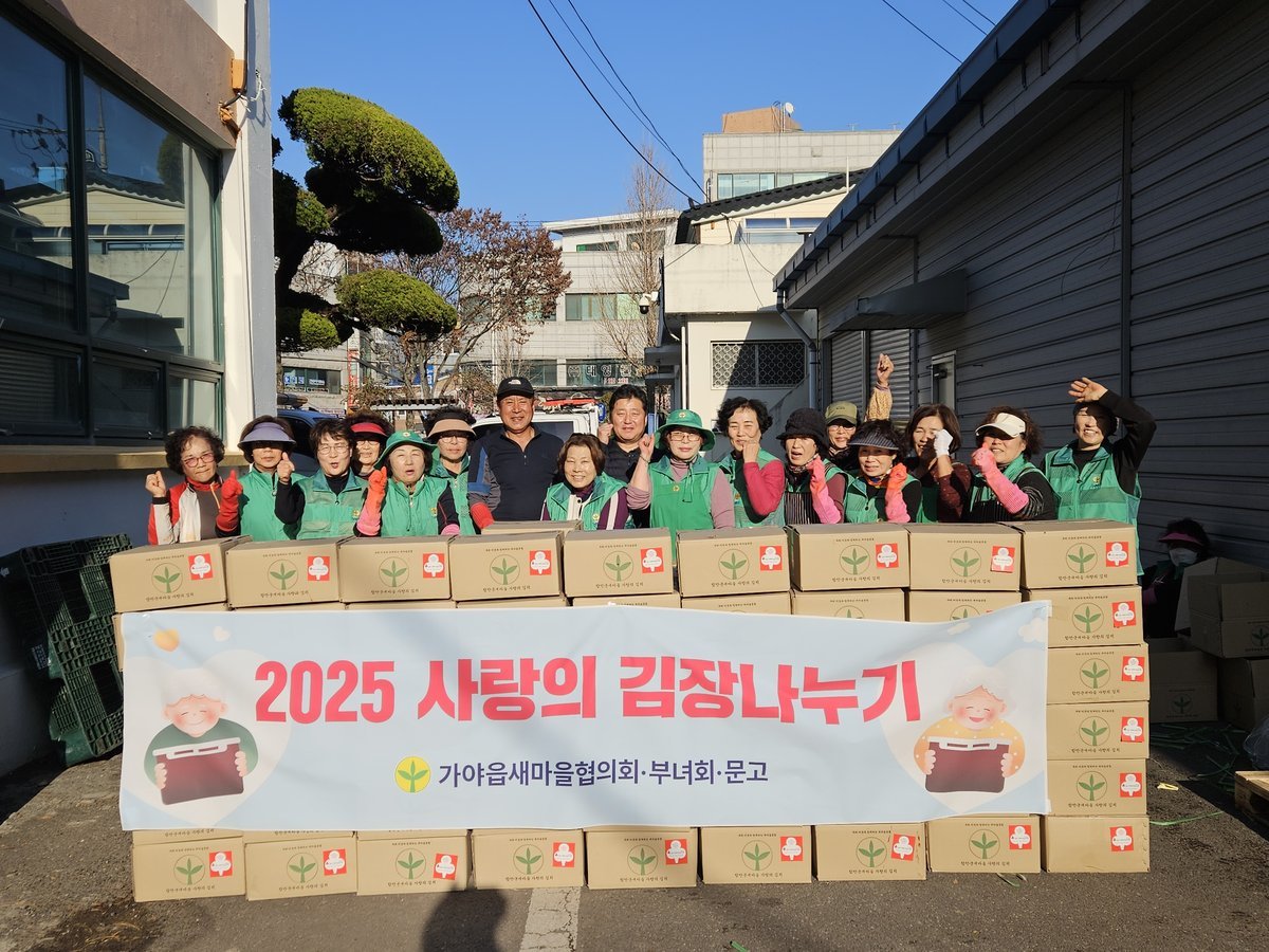 가야읍 새마을협의회·부녀회, 사랑과 정성으로 버무린 2025 사랑의 김장 나누기 (함안군 제공) [PEDIEN] 함안군 가야읍 새마을협의회와 부녀회가 '2025 사랑의 김장 나누기' 행사를 통해 지역 사회에 따뜻한 온정을 전했다.이번 김장 나누기 행사는 나흘간 진행되었으며, 새마을 회원 40여 명이 배추 뽑기부터 절이기, 양념 버무리기까지 모든 과정에 직접 참여했다.회원들은 정성껏 배추 1260포기를 손질하여 12kg 분량의 김장김치 230상자를 담갔다. 김장에 사용된 배추는 함안시니어클럽에서 기탁한 700포기와 새마을협의회가 자체 구매한 560포기로 마련되었다.완성된 김장김치는 가야읍 내 경로당과 독거노인, 저소득 취약계층 가정 등에 전달되어 추운 겨울을 따뜻하게 녹이는 데 기여했다.유병용 가야읍 새마을협의회 회장과 정명희 부녀회장은 어려운 이웃들이 따뜻하게 겨울을 보내는 데 조금이나마 도움이 되기를 바란다며, 앞으로도 지역 사회 나눔 문화 확산에 적극적으로 참여할 것을 약속했다.정환영 가야읍장은 매년 지속되는 새마을협의회와 부녀회의 따뜻한 봉사에 감사를 표하며, 가야읍 행정 또한 취약계층 지원에 최선을 다할 것을 밝혔다. -