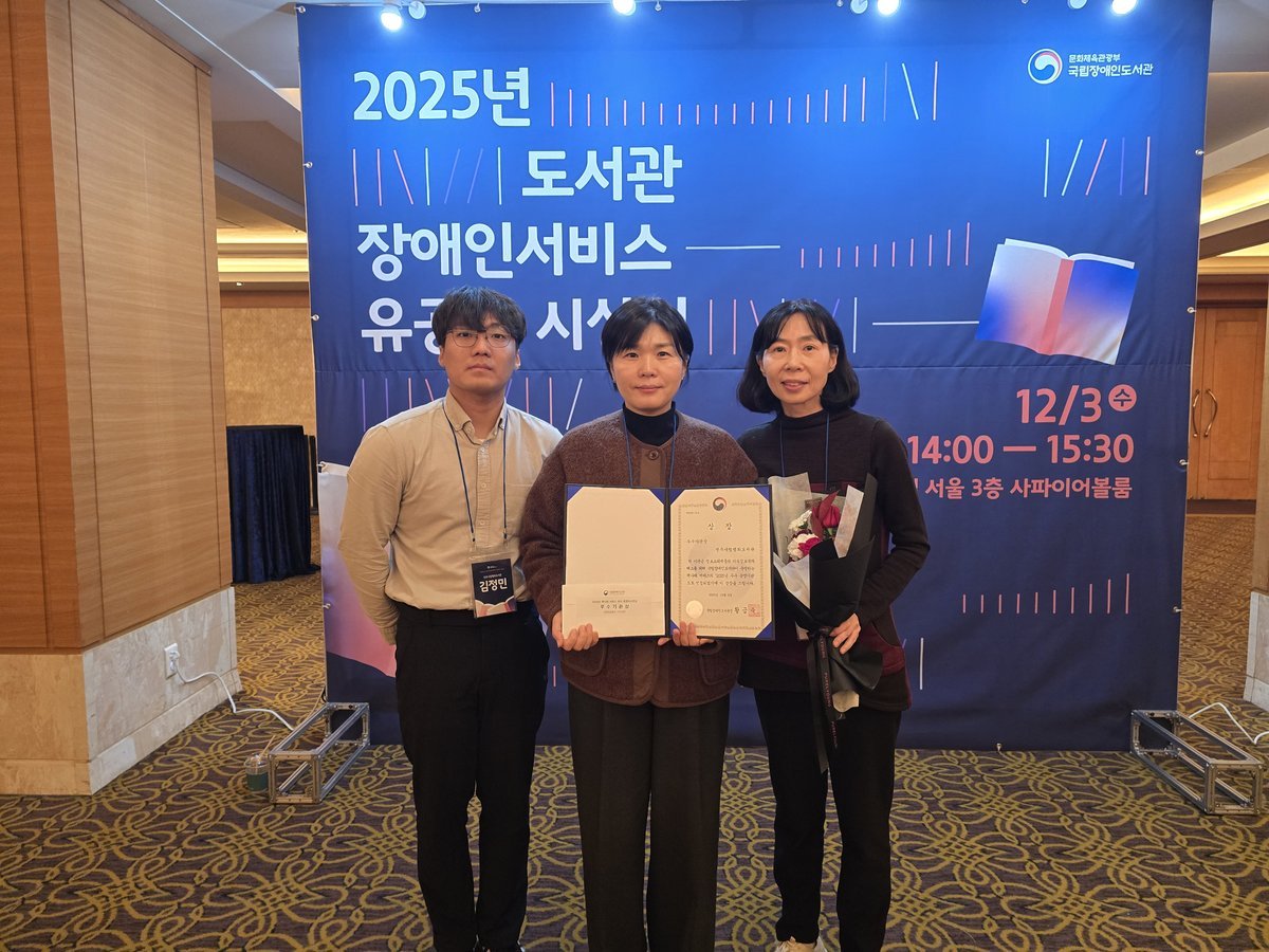 전주시 평화도서관 년 책나래 서비스 우수 운영도서관 선정 [PEDIEN] 전주시 평화도서관이 장애인을 위한 도서 택배 서비스인 '책나래 서비스'를 성공적으로 운영하며, 2025년 국립장애인도서관 평가에서 우수 운영 도서관으로 선정되는 영예를 안았다.국립장애인도서관장상을 수상한 평화도서관은 도서관 방문이 어려운 장애인, 국가유공상이자, 장기요양대상자에게 도서를 무료로 배달하는 '책나래 서비스'를 통해 정보 접근성을 높이는 데 크게 기여했다.전국 공공도서관을 대상으로 실시된 이번 평가에서 평화도서관은 전북, 전남, 광주, 제주 권역 우수기관으로 선정되며, 9년간 꾸준히 안정적인 서비스를 제공해 온 점을 인정받았다.평화도서관은 수어영상도서 프로그램, 수어교실, 장애인식교육 등 다양한 특화 프로그램을 운영하며 장애인 이용자를 위한 맞춤형 서비스를 제공해왔다. 특히, 신속한 서비스 대응과 사서 대리 신청 기능은 이용자들의 만족도를 높였다.책나래 서비스를 통해 1회 최대 10권의 도서를 30일간 이용할 수 있으며, 전주시립도서관 누리집 또는 책나래 누리집에서 신청 가능하다. 직접 신청이 어려운 경우 도서관의 도움을 받을 수 있다.전주시는 2011년부터 책나래 서비스를 통해 약 300명의 회원에게 7800여 권의 도서를 제공했으며, 현재 12개 시립도서관에서 서비스를 운영하며 지원을 확대하고 있다.박남미 전주시 도서관평생학습본부장은 "평화도서관의 수상은 장애인 특화 도서관으로서 매우 의미있는 성과"라며, "앞으로도 책나래 서비스를 통해 장애인 이용자를 위한 지속적인 서비스 제공에 최선을 다하겠다"고 밝혔다. -