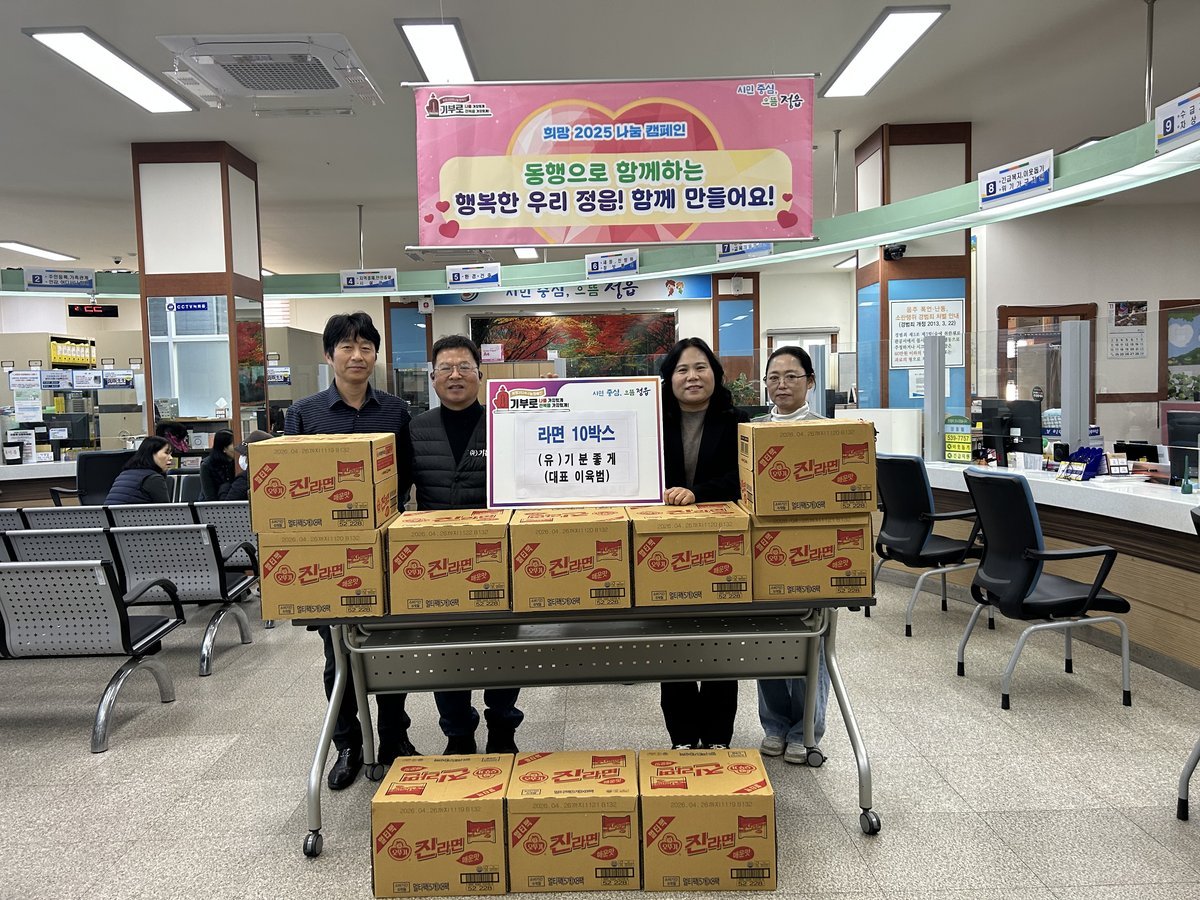 지역 안전 넘어 이웃 사랑까지… 기분좋게, 정읍 내장상동에 라면 기탁 (정읍시 제공) [PEDIEN] 정읍시 내장상동에 따뜻한 온정이 전해졌다. 사회적기업 '기분좋게'가 연말을 맞아 지역 내 취약계층을 위해 라면 10박스를 기탁하며 이웃 사랑을 실천했다.'기분좋게'는 지역사회의 안전을 책임지는 방역 및 소독 전문 기업이다. 이번 라면 기탁은 단순한 사업 활동을 넘어, 어려운 이웃들에게 실질적인 도움을 제공하고 나눔 문화를 확산하고자 하는 '기분좋게'의 따뜻한 마음에서 비롯됐다.기탁된 라면 10박스는 25만원 상당으로, 내장상동의 공유냉장고를 통해 지역 내 도움이 필요한 이웃들에게 전달될 예정이다. '기분좋게'는 2017년 법인 등록 이후 정읍시의 인정과 전북특별자치도, 보건복지부의 지원을 받으며 꾸준히 성장해왔다.현재 관공서와 교육기관 등에서 전문 인력을 통해 체계적인 청소 서비스를 제공하며 사회적기업으로서의 입지를 굳건히 하고 있다. 이처럼 '기분좋게'는 단순한 방역 서비스를 넘어 지역사회와의 상생을 도모하고 기업의 사회적 책임을 적극적으로 실천하고 있다.이육범 '기분좋게' 대표이사는 "방역을 통해 지역 사회의 건강을 지키는 것뿐만 아니라, 어려움을 겪는 이웃들에게 따뜻한 마음을 전달하고 싶었다"며 "앞으로도 소외된 이웃들을 살피며 지역 사회에 나눔 문화가 확산될 수 있도록 노력하겠다"고 밝혔다.박은주 내장상동장은 "어려운 이웃을 생각하는 따뜻한 마음에 깊이 감사드린다"며 "기탁해주신 라면은 공유냉장고를 이용하는 주민들에게 소중히 전달하여 그 뜻이 빛날 수 있도록 하겠다"고 화답했다. -