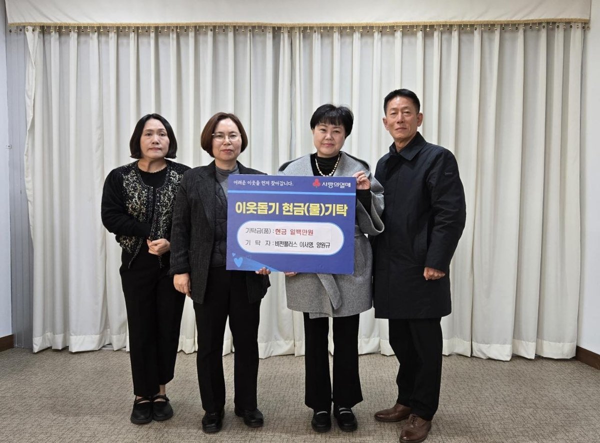 비전플러스 양원규 대표, 관촌면에 성금 100만원 기탁 (임실군 제공) [PEDIEN] 비전플러스 양원규 대표가 지난 4일, 고향인 관촌면의 어려운 이웃을 위해 써달라며 100만원의 성금을 기탁해 훈훈함을 더하고 있다.양 대표의 꾸준한 나눔은 이번이 처음이 아니다. 그는 수년째 관촌면에 성금을 기탁하며 지역사회에 따뜻한 온정을 전하고 있다.이번에 기탁된 성금은 관촌면 지역사회보장협의체의 특화사업을 위한 지정기탁금으로 공동모금회를 통해 관리될 예정이다. 면은 기탁금을 관내 취약계층을 위한 복지 사업에 투입, 실질적인 도움을 제공할 계획이다.양원규 대표는 “고향의 어려운 이웃에게 조금이나마 도움을 줄 수 있어 기쁘다”며 소감을 밝혔다. 그는 이어 “앞으로도 지속적인 나눔을 실천하며 지역사회에 기여하겠다”고 약속했다.소지현 관촌면장은 “꾸준히 성금을 기탁해 주신 양원규 대표님에게 깊이 감사드린다”고 말했다. 덧붙여 “면에서도 관내 취약계층의 복지 욕구를 해결하고, 따뜻한 지역사회를 만들도록 더욱 노력하겠다”고 다짐했다. -