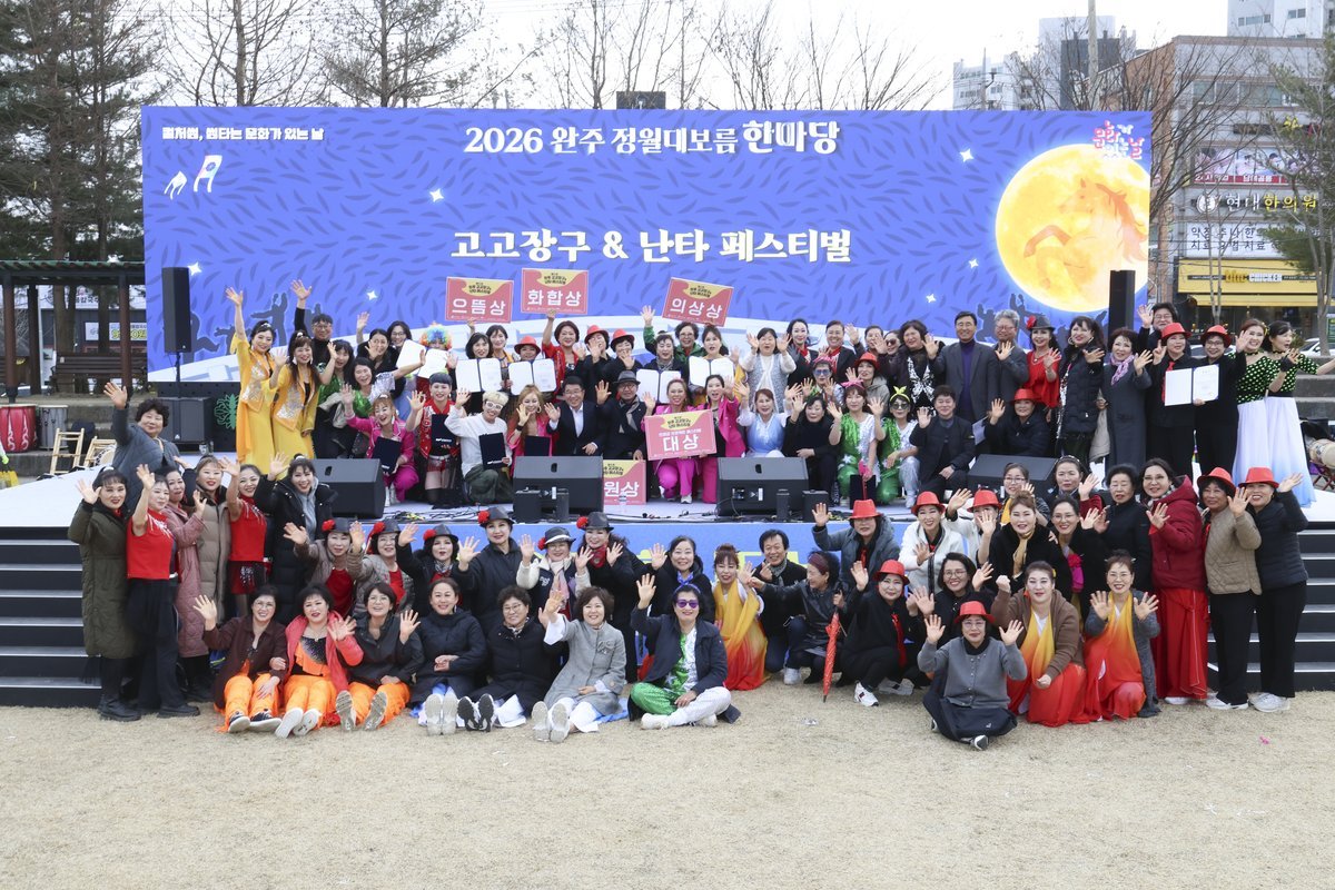 5천 명 모인 둔산공원, 흥겨운 고고장구 장단으로 하나 된 완주 (완주군 제공) [PEDIEN] 완주문화재단은 지난 3월 1일 완주군 둔산공원 일원에서 '2026 완주 고고장구 난타 페스티벌'을 성황리에 개최했다.이번 행사는 '2026 완주 정월대보름 한마당 축제'의 일환으로 한국 고유의 타악기인 고고장구를 현대적으로 재해석해 완주 산업단지 근로자와 가족, 지역 주민이 함께 즐길 수 있는 공동체형 전통문화 행사로 기획됐다.완주 13개 읍 면이 함께 참여하는 지역 생활문화 축제로 진행된 이번 행사에서는 민속놀이와 체험, 공연 프로그램이 마련되어 세대가 함께 어우러지는 가족 참여형 문화행사로 큰 호응을 얻었다.특히 완주 관내 삼례읍, 봉동읍, 용진읍, 상관면, 이서면, 소양면, 구이면, 고산면, 화산면 등 9개 읍 면에서 총 14개 팀, 159명의 지역 주민이 참여한 '고고장구 난타 경연'은 주민들이 직접 무대에 올라 신명나는 공연을 선보이며 행사장의 분위기를 한층 뜨겁게 달궜다.생활문화 동호회와 지역 주민이 함께 만든 무대는 공동체가 어우러지는 문화 화합의 장으로 관람객들의 큰 박수와 호응을 이끌어냈다.행사는 오전 11시부터 오후 5시까지 진행됐으며 어린이 공연을 시작으로 고고장구 예선전, 풍류학교 공연, 완주산단 근로자 가요제 시상자 공연, 고고장구 난타 통합 공연, 시상식 및 폐회식 등이 이어졌다.행사장에는 완주군어린이집연합회와 지역 주민이 참여한 먹거리 부스와 전통 체험부스, 플리마켓 등이 운영되어 가족 단위 방문객들에게 다양한 즐길거리를 제공했다.이날 행사에는 약 5000여명의 군민과 방문객이 찾아 둔산공원을 가득 메우며 지역 생활문화 축제의 열기를 더했다.주민이 직접 공연에 참여하고 관람객이 함께 어우러지는 참여형 축제로 진행되면서 완주 공동체 문화의 의미를 되새기는 시간으로 평가받았다.협동조합 만경강사람들 이은숙 이사장은 "고고장구는 창시자인 조승현 단장으로부터 완주에서 처음 시작된 이후 구이면을 중심으로 각종 생활문화 수업과 지역 행사를 통해 확산되어 왔다"며 "현재 완주 13개 읍 면과 동아리 활동을 포함해 약 200여명의 주민이 꾸준히 참여하고 있다"고 말했다.이어 "고고장구는 한국 전통 타악기인 장구 연주에 현대적인 트로트 리듬과 퍼포먼스를 결합한 공연문화로 주민들이 함께 어우러져 즐길 수 있는 신명나는 생활문화 활동으로 자리 잡고 있다"고 덧붙였다.완주문화재단 정철우 상임이사는 "이번 페스티벌은 주민이 주체가 되어 완주의 전통과 생활문화를 함께 만들어가는 지역 상생형 축제였다"며 "앞으로도 지역 주민이 함께 참여하고 만들어가는 생활문화 축제를 지속적으로 확대해 나가겠다"고 밝혔다. -