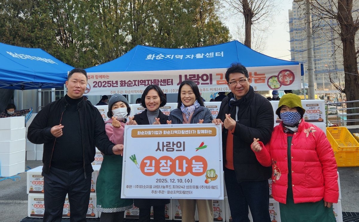 화순지역자활센터에서 진행한 김장 나눔 행사 기념사진 화순군 제공 [PEDIEN] 화순군에서 위탁 운영을 지원하는 화순지역자활센터는 지난 10일 자활기업, 민간기업을 비롯해 화순지역자활센터 참여자 등 70여 명이 참여한 가운데 김장 나눔 행사를 진행했다고 밝혔다.특히 올해는 화순지역자활센터 청춘영농사업단에서 직접 재배한 배추·무·갓으로 김장 김치를 담가 더욱 뜻깊은 시간이 됐다.이날 담근 김장 김치 100박스는 화순군가족센터와 화순군정신건강복지센터를 통해 복지 사각지대의 청·장년층 및 사회적 고립 청년 100가구에 전달됐다.행사에 참여한 자활기업 대표는 “센터에서 재배한 농산물로 담근 김치를 지역사회와 함께 나눌 수 있어 의미가 컸다”라며, “앞으로도 자활기업은 화순지역자활센터와 상생하며 취약계층 지원에 힘쓰겠다”라고 말했다.설진국 화순지역자활센터 센터장은 “청춘영농사업단의 농산물 제공과 자활기업·지역기관의 참여로 올해 김장 나눔 행사가 더욱 뜻깊게 진행되었다”라며, “앞으로도 지역과 협력하여 복지 사각지대 지원 및 지역사회 연대 강화를 위한 공익 활동을 추진하겠다”라고 말했다.또한, 화순지역자활센터는 저소득 주민의 자활·자립 지원을 위해 보건복지부로부터 지정 운영 중이며, 참여를 희망하는 주민은 화순군 사회복지과, 읍·면 사무소 또는 화순지역자활센터로 문의하면 된다. -