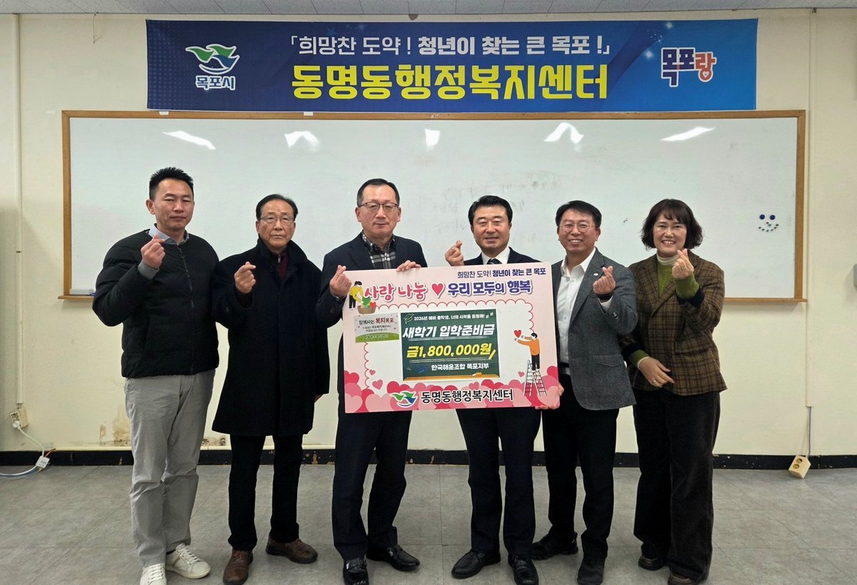 한국해운조합 목포지부, 동명동에 2026년 입학준비금 기탁 (목포시 제공) [PEDIEN] 한국해운조합 목포지부가 지난 12월 4일, 목포시 동명동 행정복지센터에 저소득 가정의 예비 중학생들을 위한 입학준비금 180만 원을 기탁했다.이번 기탁은 경제적 어려움을 겪는 학생들이 희망을 잃지 않고 학업에 집중할 수 있도록 돕기 위해 마련됐다.지원금은 2026년 중학교 입학 예정인 동명동 관내 저소득 청소년 6명에게 각 30만 원씩 전달될 예정이다. 학생들은 이 지원금을 통해 교복, 학용품 등 입학에 필요한 물품을 구입할 수 있다.지원금은 목포복지재단을 통해 학생 개인 통장으로 직접 지급된다.최종진 한국해운조합 목포지부장은 “새로운 시작을 앞둔 학생들이 꿈을 키워나가는데 조금이나마 도움이 되기를 바란다”며, “앞으로도 지역사회에 기여할 수 있는 다양한 사회공헌 활동을 지속적으로 펼쳐나갈 것”이라고 밝혔다.조진만 동명동장은 “어려운 이웃을 돕는 따뜻한 마음에 깊이 감사드린다”며, “해운조합 목포지부의 후원이 학생들에게 큰 힘이 될 것이다. 동명동 또한 소외된 이웃 없이 모두가 행복한 마을을 만들기 위해 더욱 노력하겠다”고 말했다.한편, 한국해운조합 목포지부는 해운산업 발전뿐만 아니라 지역사회 공헌에도 적극적으로 참여하고 있다. 매년 학생 지원, 소외계층 지원 등 다양한 사회공헌 활동을 통해 나눔 문화 확산에 기여하고 있다. -