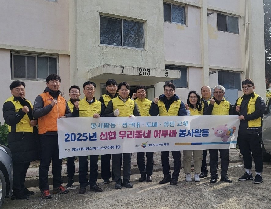 신협 두손모아봉사단, 용해동 취약계층에 집수리 봉사 (목포시 제공) [PEDIEN] 신협 전남서부평의회 두손모아봉사단이 지난 4일 용해동의 어려운 이웃을 찾아 싱크대 교체 봉사활동을 펼쳤다.이번 봉사활동은 신협의 대표적인 사회공헌 사업인 '우리동네 어부바'의 일환으로, 지역 사회의 취약계층을 돕고 주거 환경을 개선하기 위해 마련됐다. 신협 임직원들로 구성된 두손모아봉사단은 평소에도 꾸준히 지역 사회를 위한 봉사활동에 참여하고 있다.이날 봉사에는 14명의 봉사단원이 참여하여 구슬땀을 흘렸다. 낡고 불편한 싱크대를 새것으로 교체하고, 집 안 곳곳을 청소하며 쾌적한 주거 환경을 만드는 데 힘을 보탰다.김동규 두손모아봉사단장은 “어려운 이웃들의 생활에 조금이나마 도움이 될 수 있어 기쁘다”며 “앞으로도 지속적인 사회공헌활동을 통해 지역 사회에 따뜻한 온기를 전하겠다”고 말했다.박상희 용해동장은 “추운 날씨에도 불구하고 봉사활동에 참여해주신 두손모아봉사단에 진심으로 감사드린다”며 “민과 관이 협력하여 더욱 따뜻하고 살기 좋은 용해동을 만들어 나가겠다”고 밝혔다. -