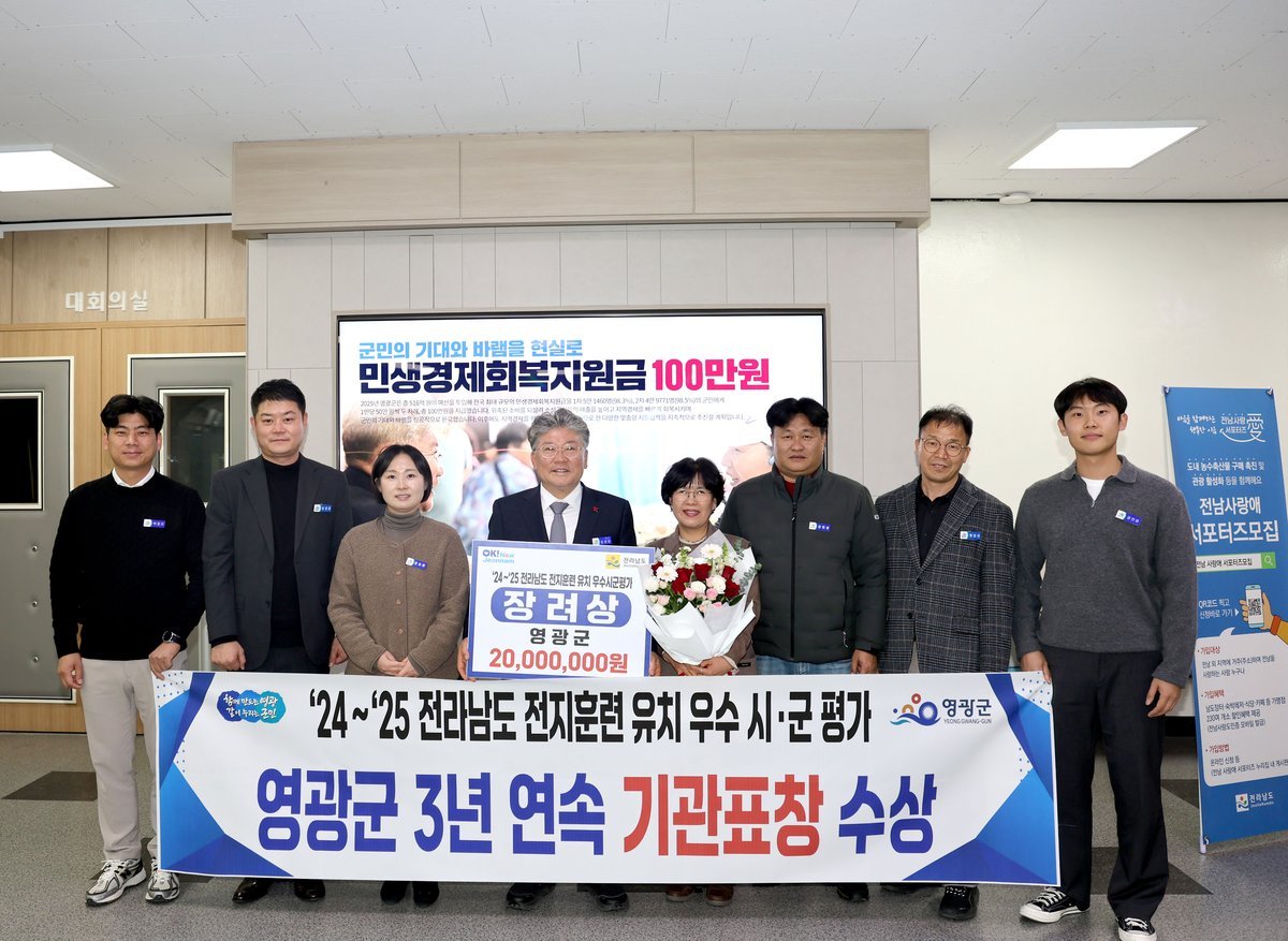 [PEDIEN] 영광군이 전라남도에서 실시한‘2024~2025 전지훈련 유치 평가’에서 장려상을 수상하며 3년 연속 수상이라는 성과를 달성해 지속적인 스포츠마케팅 추진과 체계적인 전지훈련 유치 활동의 성과를 다시 입증했다.이번 평가는 2024년 9월 1일부터 2025년 8월 31일까지 전남 22개 시·군을 대상으로 전지훈련, 전국단위 대회 등 스포츠마케팅 전반을 종합적으로 심사한 것으로, 영광군은 유치 인원, 홍보 실적, 관광·문화시설 활용도, 계획 수립 및 우수시책 등 주요 지표에서 우수한 실적을 기록했다.특히, 영광군은 평가기간동안 축구, 농구, 탁구 등 6개 목에 걸쳐 12개 전지훈련을 유치하고 전국대학태권도대회, 전국종별농구선수권대회 등 9개 전국단위 스포츠대회를 개최하여 10만여 명의 방문객을 유치, 약 102억 원의 지역경제 활성화 효과를 거둔 점이 높게 평가된 것으로 보인다.한편 영광군은 이번 장려상 수상으로 확보한 상사업비 20백만 원을 활용하여 지역 내 체육시설 개보수 및 스포츠 인프라 개선에 투입할 계획이다.영광군수는“영광군이 3년 연속 전남도 평가에서 수상한 것은 체계적인 전지훈련 유치 전략과 노력이 만든 값진 성과”라며 “2026년에는 스포츠대회 개최를 더욱 확대하여, 지역경제 활성화는 물론 도내에서 영광군 스포츠산업의 위상을 제고할 수 있도록 최선을 다하겠다.”라고 말했다.
