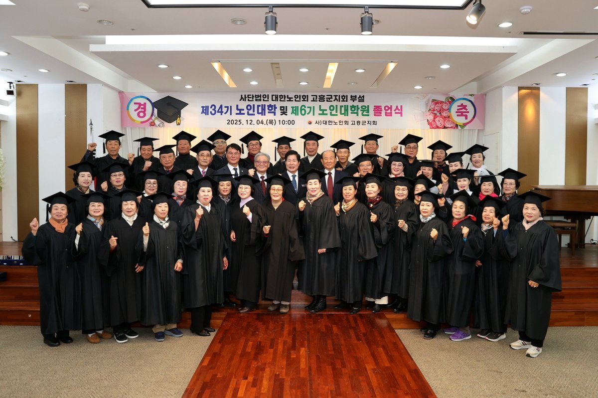 고흥군, 배움의 열정으로 빛난 어르신들의 졸업식 (고흥군 제공) [PEDIEN] 고흥군이 어르신들의 배움에 대한 뜨거운 열정을 응원하며 노인대학 및 대학원 졸업식을 성황리에 개최했다.지난 4일, 고흥 하나웨딩홀에서는 대한노인회 고흥군지회 부설 노인대학과 노인대학원의 합동 졸업식이 열렸다. 이 자리에는 졸업생 91명을 비롯해 공영민 고흥군수, 류제동 고흥군의회 의장, 지회 관계자, 그리고 졸업생 가족들이 참석하여 기쁨을 함께 나눴다.이번 졸업식은 배움에 대한 끊임없는 열정을 보여준 어르신들의 노고를 격려하고, 그 성과를 축하하기 위해 마련되었다. 졸업생들은 지난 1년간 배움의 끈을 놓지 않고 학업에 정진하며 값진 결실을 맺었다.공영민 군수는 축사를 통해 빠르게 변화하는 시대에 발맞춰 새로운 지식을 습득하는 것의 중요성을 강조하며, 어르신들의 평생학습 기회 확대를 약속했다. 또한, 고흥군은 어르신들이 더욱 풍요롭고 행복한 노년을 보낼 수 있도록 일자리와 생활체육 기회 또한 확대해 나갈 계획임을 밝혔다.고흥군은 앞으로도 어르신들의 사회 참여를 장려하고 삶의 질을 향상시키기 위해 평생교육 프로그램과 노인 일자리 사업을 지속적으로 추진할 예정이다. 이를 통해 어르신들이 활기찬 노년을 보낼 수 있도록 적극 지원할 계획이다. -