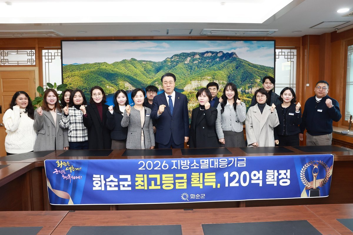 지방소멸대응기금 120억 원 확보 축하 기념사진 화순군 제공