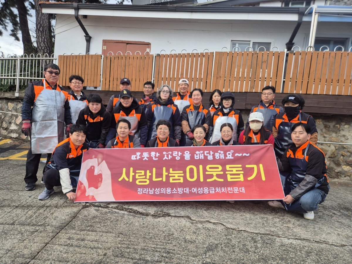 정라남·응급처치 의용소방대, 취약계층에 사랑의 연탄 600장 나눔