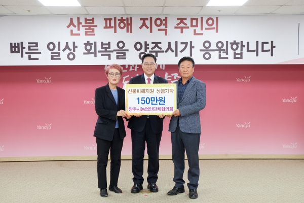 [PEDIEN] 경기도 양주시 농업인단체협의회가 최근 대한적십자사 경북지사를 통해 2025년 영남지역 산불 피해 복구를 위한 특별모금에 참여하며 이웃사랑을 실천했다.