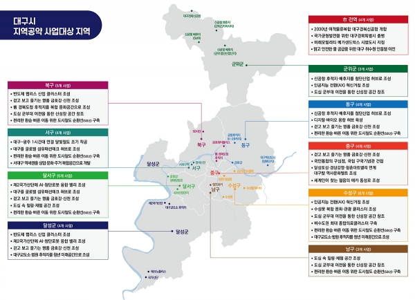 이후, 보완 작업을 거쳐 △국가 균형발전을 견인하는 신공항 중심 남부 거대 경제권 조성, △미래신산업 전환, △시민이 풍요로운 대구, △도심공간 재창조 4대 분야에서 ‘대구 미래 100년 번영’을 위한 핵심사업 23개를 최종 선정했다.