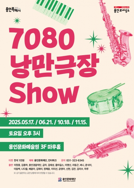 [PEDIEN] 용인문화재단은 오는 5월부터 11월까지 작년에 이어 실버 세대를 위한 공연, 2025년 ‘7080 낭만극장쇼’를 용인문화예술원 마루홀에서 개최한다.