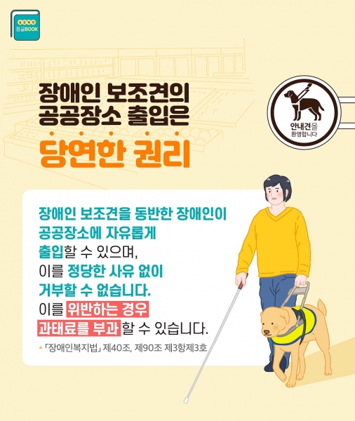 시는 최근 개정된 장애인복지법과 같은 법 시행규칙에 따라 관내 관련 시설을 대상으로 장애인 보조견 인식개선 홍보를 추진한다.