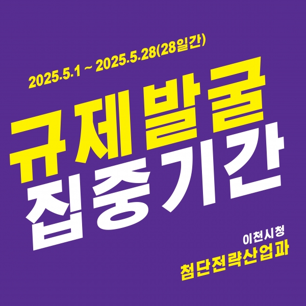 [PEDIEN] 이천시는 시민과 기업이 일상생활과 생업 현장에서 겪는 불합리한 규제와 불편한 절차를 직접 제안하고 개선할 수 있도록 오는 5월 1일부터 28일까지 ‘규제발굴 집중 기간’을 운영한다.