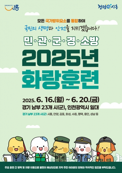 [PEDIEN] 시흥시는 오는 6월 16일부터 20일까지 시흥시 전역에서 ‘2025년 화랑훈련’을 실시한다.