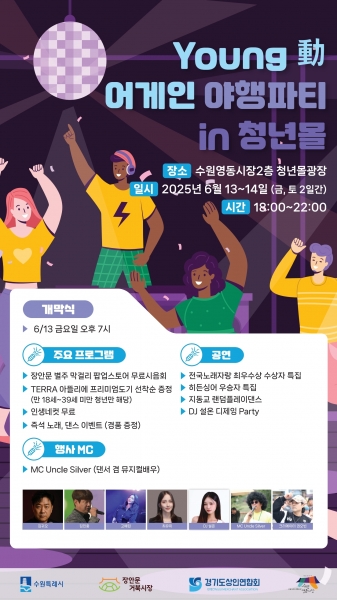 수원시 관계자는 “영동시장 청년몰에서 청년들이 마음껏 즐길 수 있는 파티를 준비했다”며 “청년 상인과 고객이 만나는 소통과 축제의 장이 될 것”이라고 밝혔다.