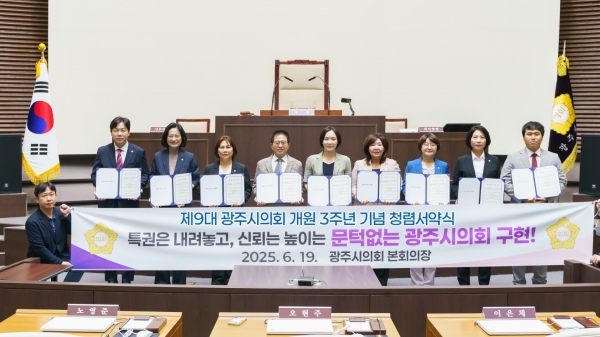 허경행 의장은 “광주시의회가 시민의 기대에 부응하는 청렴하고 책임 있는 의회로 거듭날 수 있도록 최선을 다하겠다”고 밝혔다.