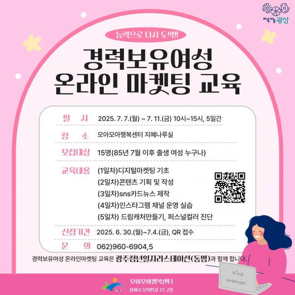 광산구 관계자는 “인공지능 활용 온라인 마케팅 교육이 경력 보유 여성들에게 새로운 기회를 제공하는 기회가 될 것”이라며 “자존감을 회복하고 사회생활에 적응할 수 있도록 돕겠다”고 전했다.