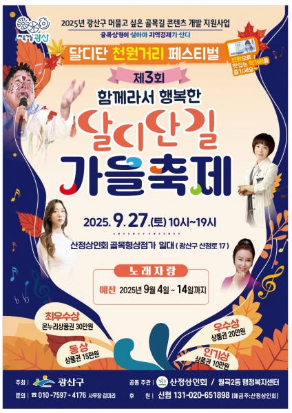 광산구가 지원하는 머물고 싶은 골목길 콘텐츠 개발·지원 사업 중 하나로 마련된 월곡2동과 비아동에서는 ‘제3회 함께라서 행복한 달디단길 가을축제’ 와 ‘2025년 100년비아 천년광산막통축제’ 가 열린다.