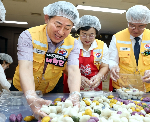 [PEDIEN] 대전 서구는 지난 29일 구청에서 대한적십자사봉사회 대전서구협의회 주관으로 추석맞이 ‘사랑의 송편 나눔 행사’를 진행했다.