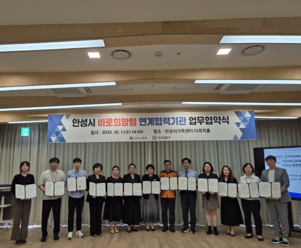△안성소방서 △경기도의료원 안성병원 △의료법인 대산의료재단 동안성병원 △밝은연세 정신건강 의학과 의원 △경기도 안성교육지원청 △안성시 정신건강복지센터 △안성시 청소년상담복지센터 △안성시 아동보호전문기관 △안성시가족센터 △안성종합사회복지관 △내마음 작은소리 심리상담센터 △늘헤아림 심리상담센터 △평택 가정상담센터 △평택 성폭력상담소 △안성시 외국인주민지원센터 안성시는 이번 협약을 통해 경찰·소방·의료·상담·복지·교육 등 다양한 기관 간 연계 체계를 구축해 피해자 지원의 공백을 줄이고 맞춤형 통합서비스를 제공할 계획이다.