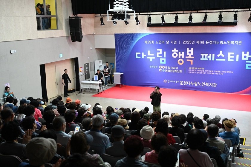지난 2일 운정다누림노인복지관에서 열린 이번 페스티벌에는 300여 명의 어르신들이 참석해 성황을 이뤘다. 2부 행사에서는 '웃음 더하기 연예인 봉사단'이 마술, 노래, 색소폰 등 다채로운 공연을 선보였으며, 어르신들을 위한 '시니어 모델 워킹 수업'도 진행되어 큰 호응을 얻었다.