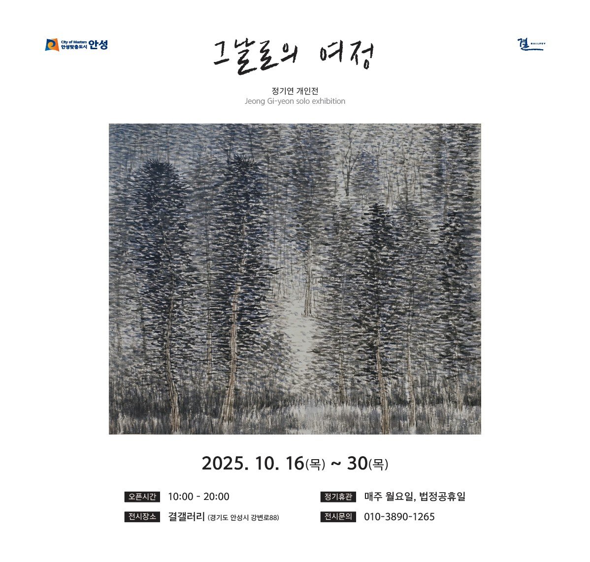 [PEDIEN] 사계절의 변화와 그 속에서 피어나는 생명의 움직임을 수묵의 깊은 농담으로 담아내는 정기연 작가가 개인전 <그날로의 여정>을 개최한다. 이번 전시는 오는 10월 16일부터 30일까지 결갤러리에서 열리며, 작가가 전국을 여행하며 마주한 풍경의 기억을 붓과 먹으로 되살린 신작들을 선보인다.