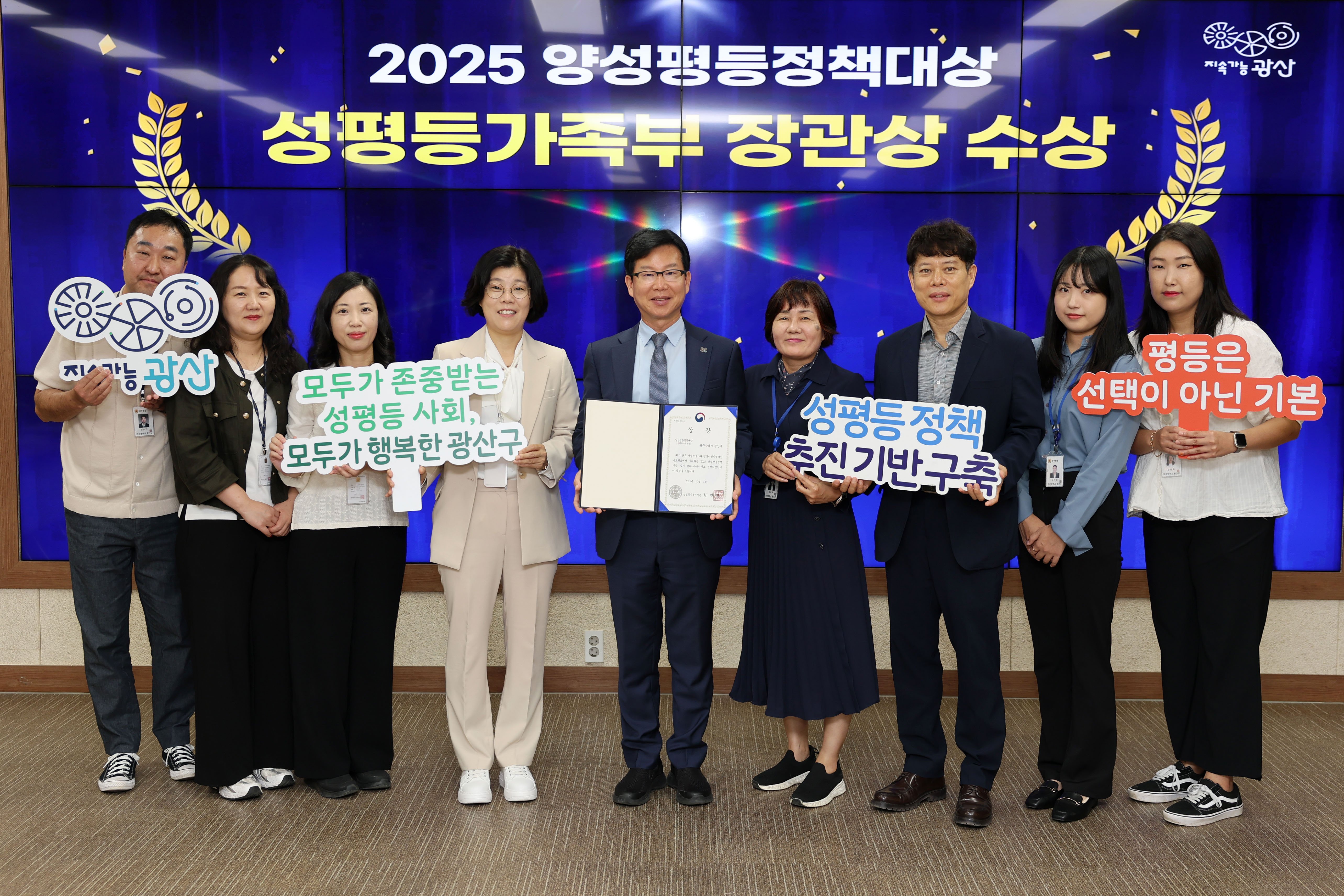 [PEDIEN] 광주 광산구가 성평등 추진 기반을 확고히 하고 주민들이 체감할 수 있는 정책을 적극적으로 펼친 성과를 인정받아 ‘2025 양성평등정책대상’에서 성평등가족부 장관상을 받았다고 13일 밝혔다.