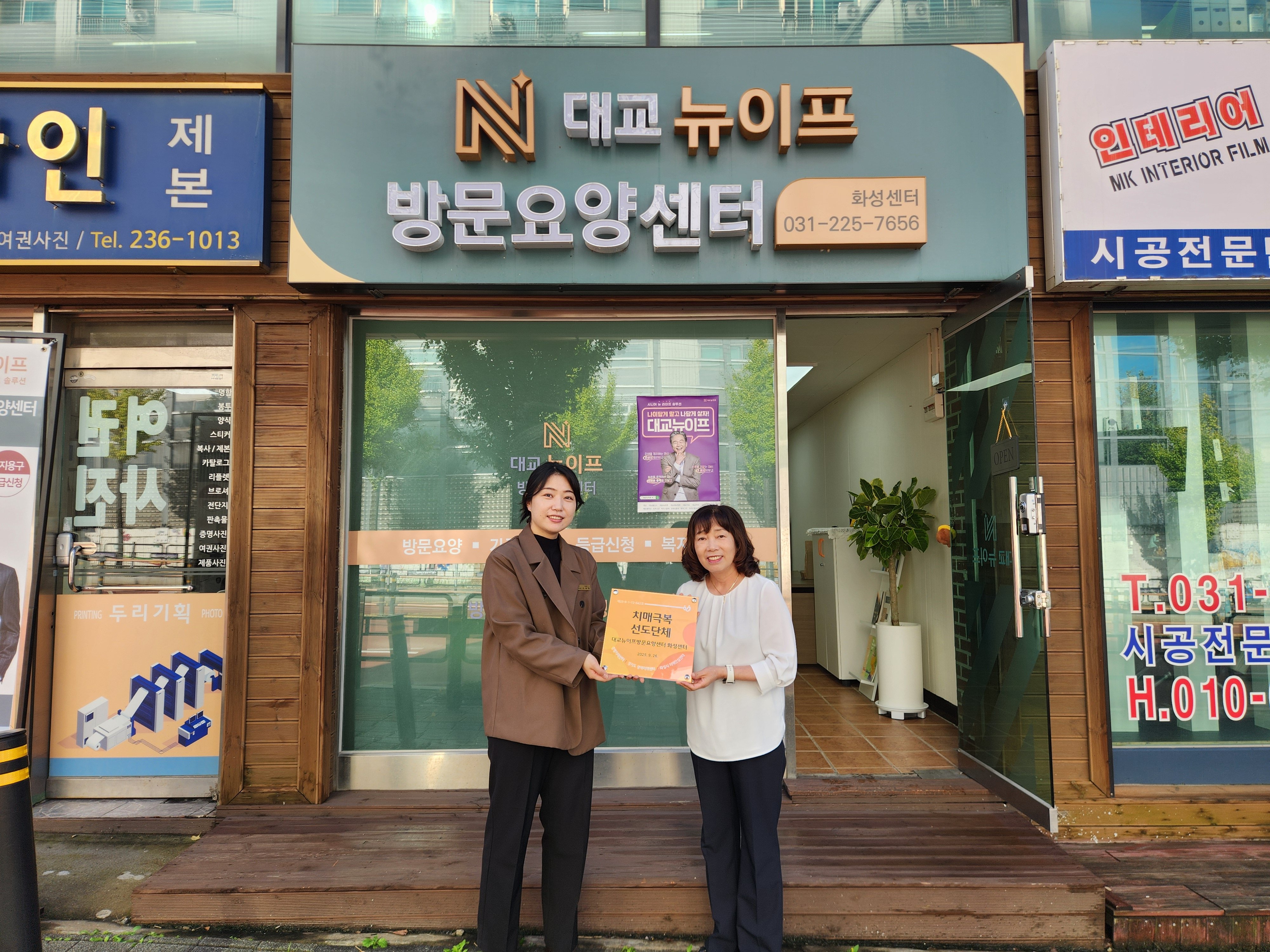 [PEDIEN] 화성특례시(시장 정명근)가 16일 병점동 소재 대교뉴이프 방문요양센터 화성센터를 ‘치매극복 선도단체’로 신규 지정하고 현판 전달식을 가졌다.