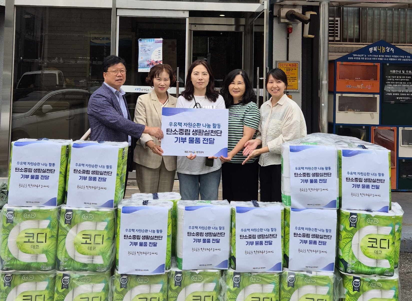 [PEDIEN] 과천시 별양동주민센터는 푸른과천환경센터로부터 기부받은 재활용 화장지를 별양동 관내 취약계층 45가구에 전달했다고 10일 밝혔다. 푸른과천환경센터 탄소중립 생활실천단은 지역 내에서 수거한 우유갑을 재활용해 화장지로 교환하는 자원 순환 활동을 펼치고 있으며 이번 기부를 통해 총 24롤 45묶음의 화장지를 별양동주민센터에 전달했다. 별양동주민센터는 해당 기부 물품을 꼭 필요한 가정에 전달하기 위해 취약계층 45가구를 선정하고 직접 가정을 방문해 따뜻한 마음과 함께 전달했다. 우유갑은 일반 폐지와 달리 고급 펄프를 사용해 재활용 가치가 높지만, 분리배출이 잘 이루어지지 않아 자원 낭비 우려가 크다. 이에 푸른과천환경센터는 환경 보호와 지역사회 나눔을 실천하기 위해 이번 활동을 추진했다. 별양동주민센터 김임숙 동장은 “기부받은 화장지는 꼭 필요한 가정에 잘 전달됐으며, 직접 가정을 방문해 안부를 살필 수 있어 더욱 의미 있었다”고 전했다. 탄소중립 생활실천단 추경숙 단장은 “작은 실천이지만 지역사회와 환경에 도움이 될 수 있어 매우 보람된 활동이었다”며, “앞으로도 시민과 함께하는 환경 보호 나눔 활동을 지속하겠다”고 말했다.