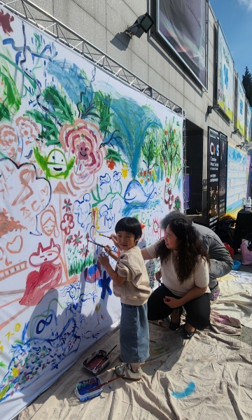 낮 12시 아람누리 해받이터에서는 그림책 작가 김중석이 ‘함께 그리니까, 좋다’를 주제로 2시간 동안 그림 그리기 공연을 진행했다.