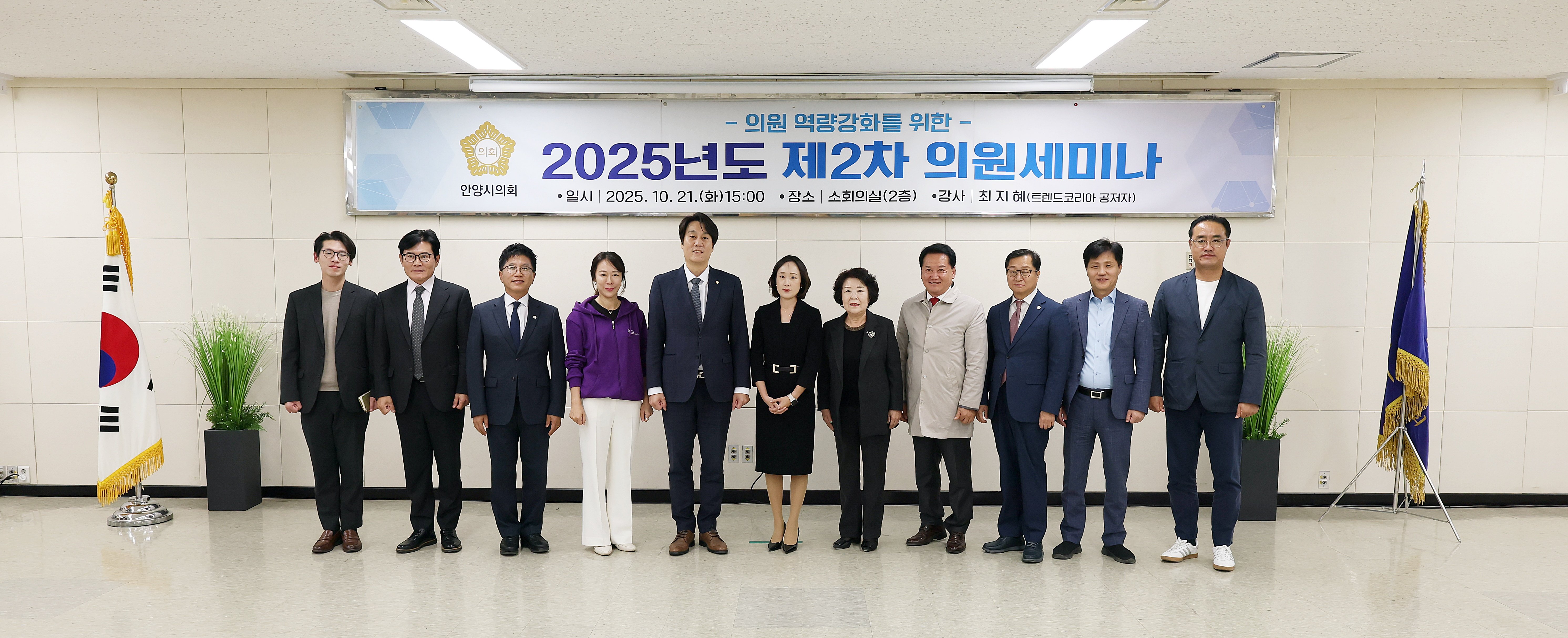 [PEDIEN] 안양시의회(의장 박준모)는 10월 21일(화) 시의회 2층 소회의실에서 시의원 및 사무국 직원을 대상으로 2025년도 제2차 의원세미나를 개최했다. 이번 세미나에서는 서울대학교 소비트렌드분석센터 연구위원인 최지혜 강사가 초청되어 ‘트렌드코리아 2026’ 이라는 주제로 2026년을 앞두고 주목해야 할 사회·경제·문화 전반의 주요 트렌드와 흐름을 깊이 있게 소개했다.