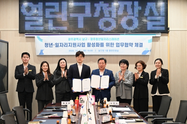 또 구청 주관 청년 대상 강의 프로그램 운영에 필요한 전문 강사를 광주 청년일자리스테이션 인력풀에서 지원하고 남구형 찾아오는 일자리스테이션 신규 추진을 통해 관내 청년들의 구직활동을 집중적으로 지원하는 등 다각적인 상호 협력 방안을 모색하기로 했다.