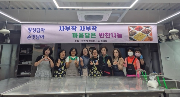 이날 행사에는 광명2동부터 광명7동까지 청소년지도협의회장들이 참여해 깍두기, 황태채무침, 계란말이 등 반찬을 직접 만들어 관내 취약계층 40가구에 전달했다.