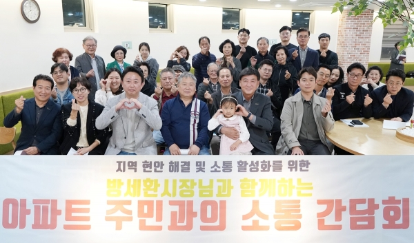 이날 간담회에는 방세환 시장을 비롯한 시 관계자와 아파트 주민들이 참석해 생활 속 불편 사항과 지역 현안에 대한 다양한 의견을 나누고 해결 방안을 함께 모색하는 시간을 가졌다.